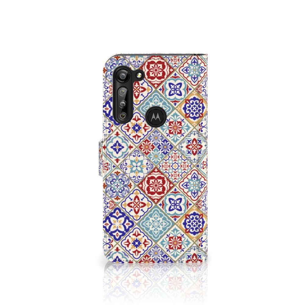 Motorola G8 Power Book Case Zwart Roze Vormen