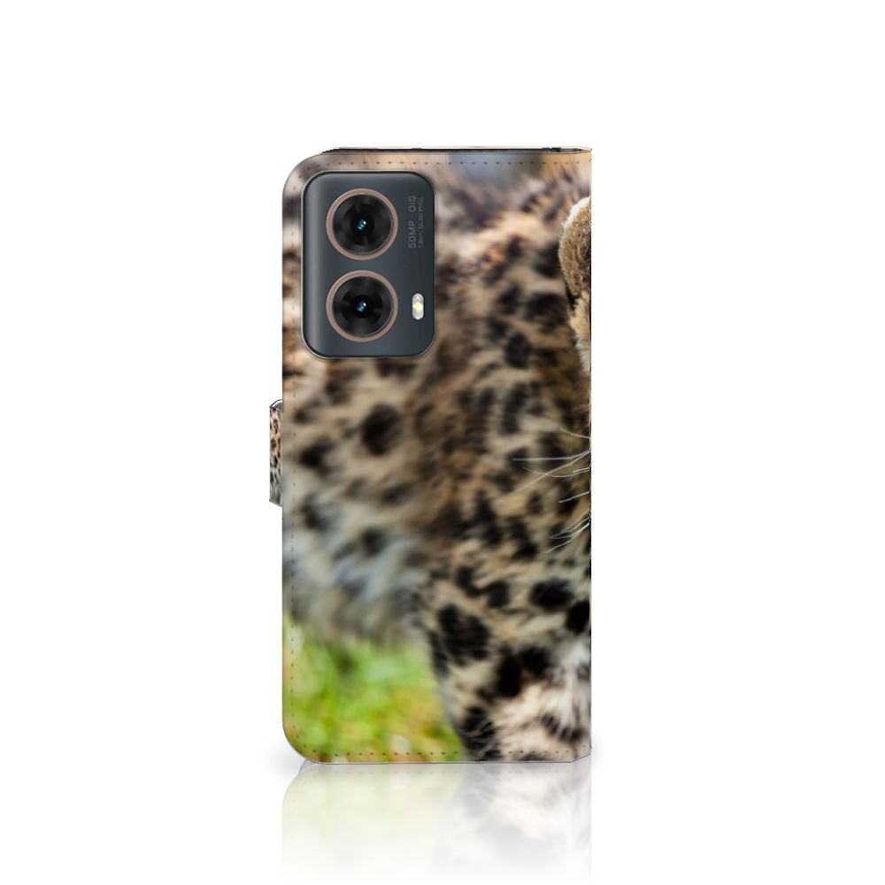 Motorola Moto G85 Telefoonhoesje met Pasjes Baby Luipaard