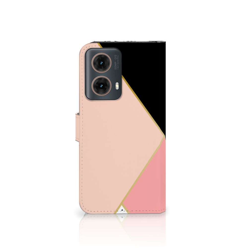 Motorola Moto G85 Book Case Zwart Roze Vormen