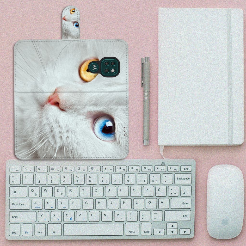 Motorola Moto G9 Play | E7 Plus Telefoonhoesje met Pasjes Witte Kat