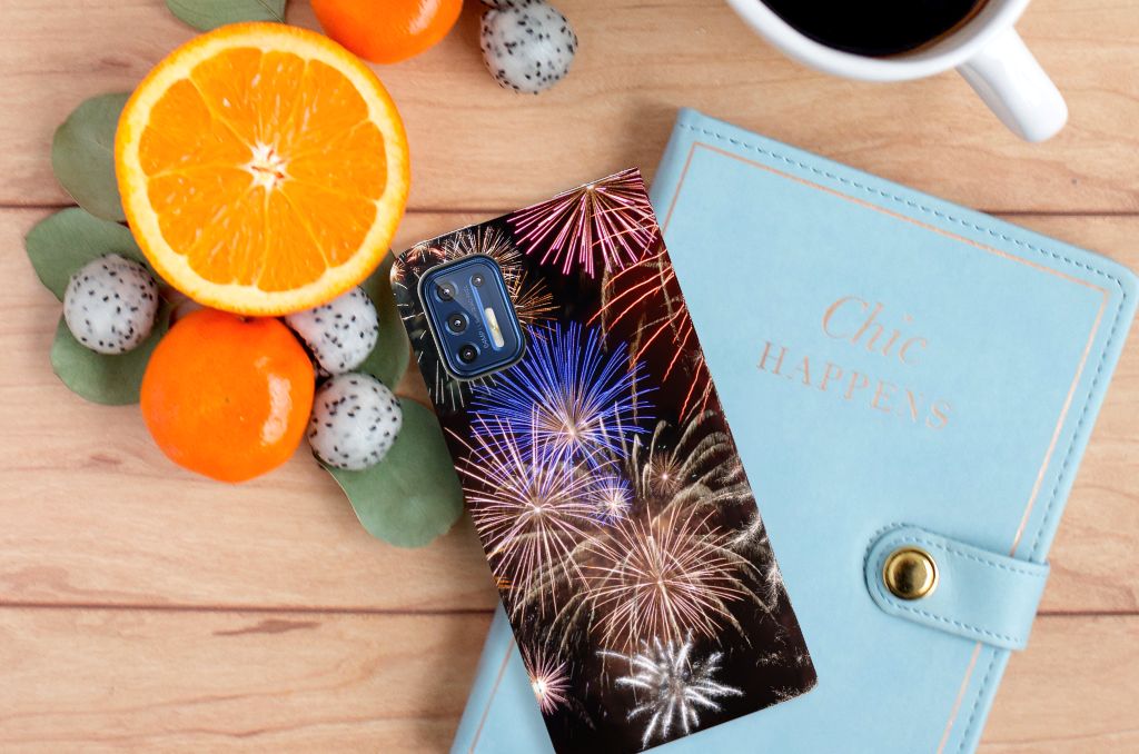 Motorola Moto G9 Plus Hippe Standcase Vuurwerk