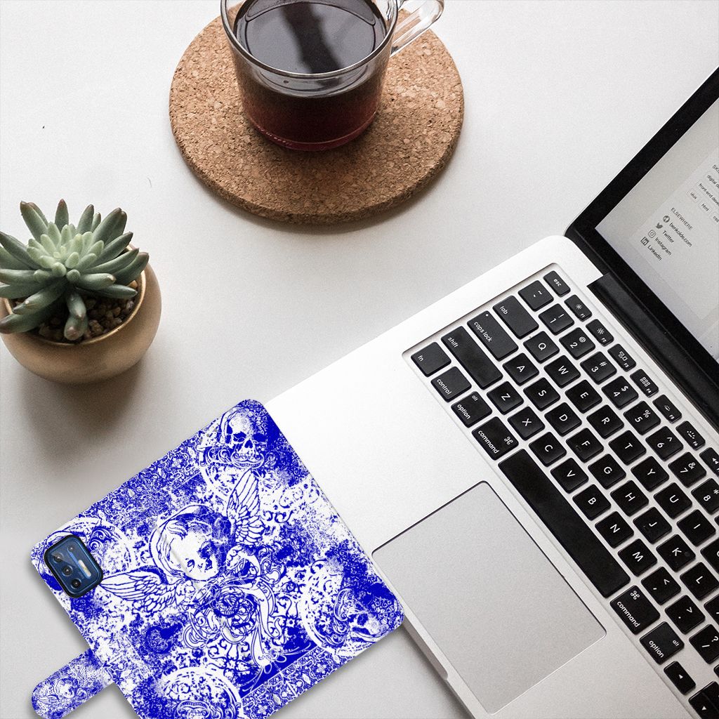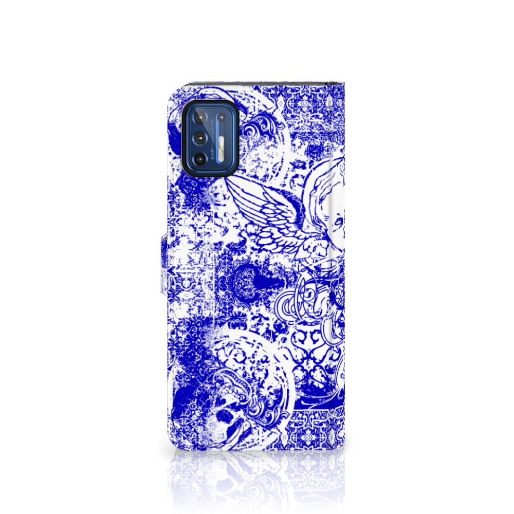 Telefoonhoesje met Naam Motorola Moto G9 Plus Angel Skull Blauw