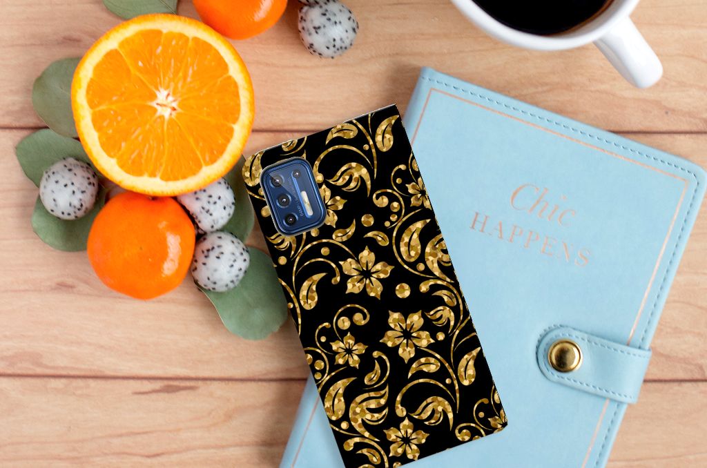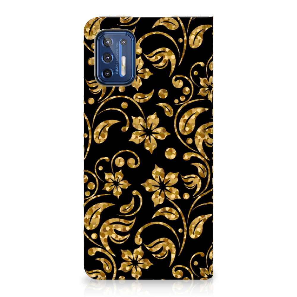 Motorola Moto G9 Plus Smart Cover Gouden Bloemen