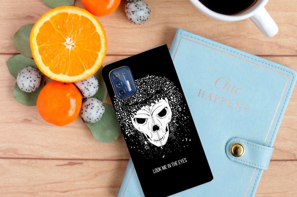 Mobiel BookCase Motorola Moto G9 Plus Skull Hair