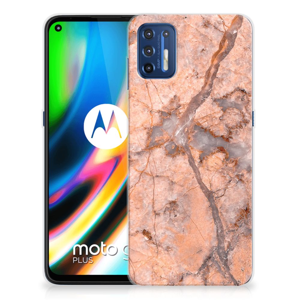 Motorola Moto G9 Plus TPU Siliconen Hoesje Marmer Oranje