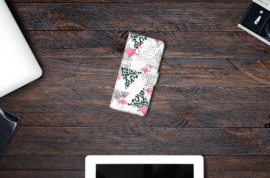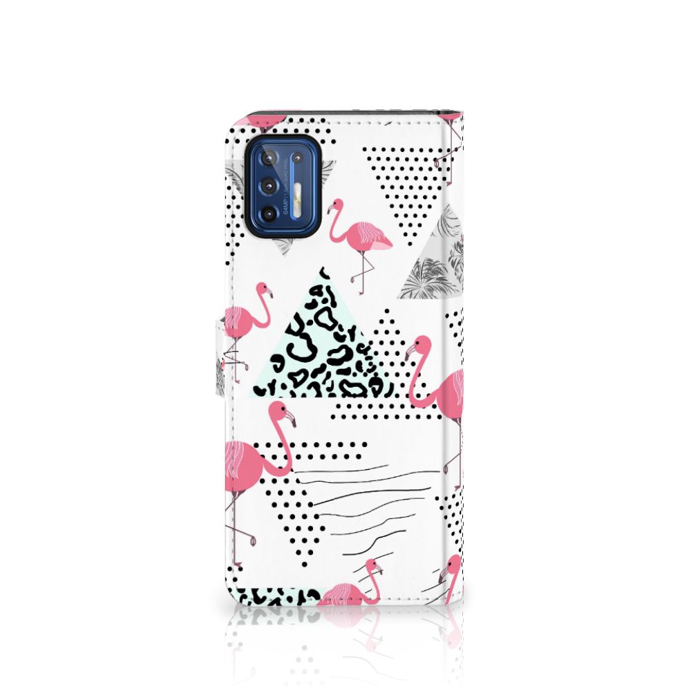 Motorola Moto G9 Plus Telefoonhoesje met Pasjes Flamingo Triangle