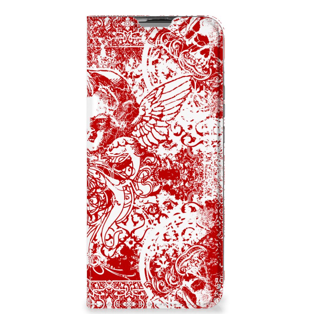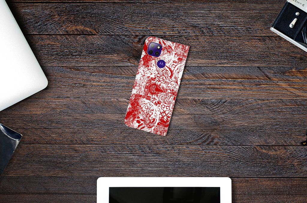 Mobiel BookCase Motorola Moto G9 Power Angel Skull Rood
