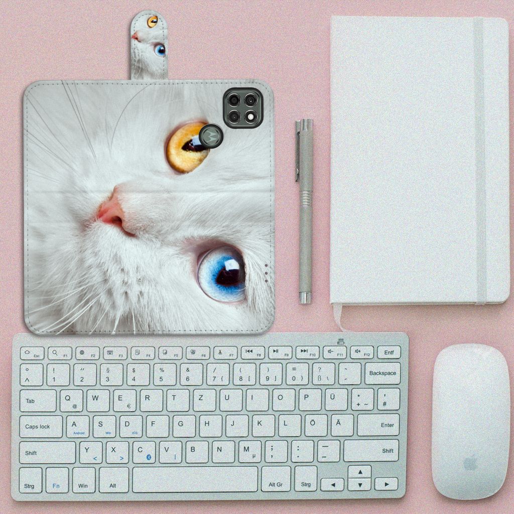 Motorola Moto G9 Power Telefoonhoesje met Pasjes Witte Kat