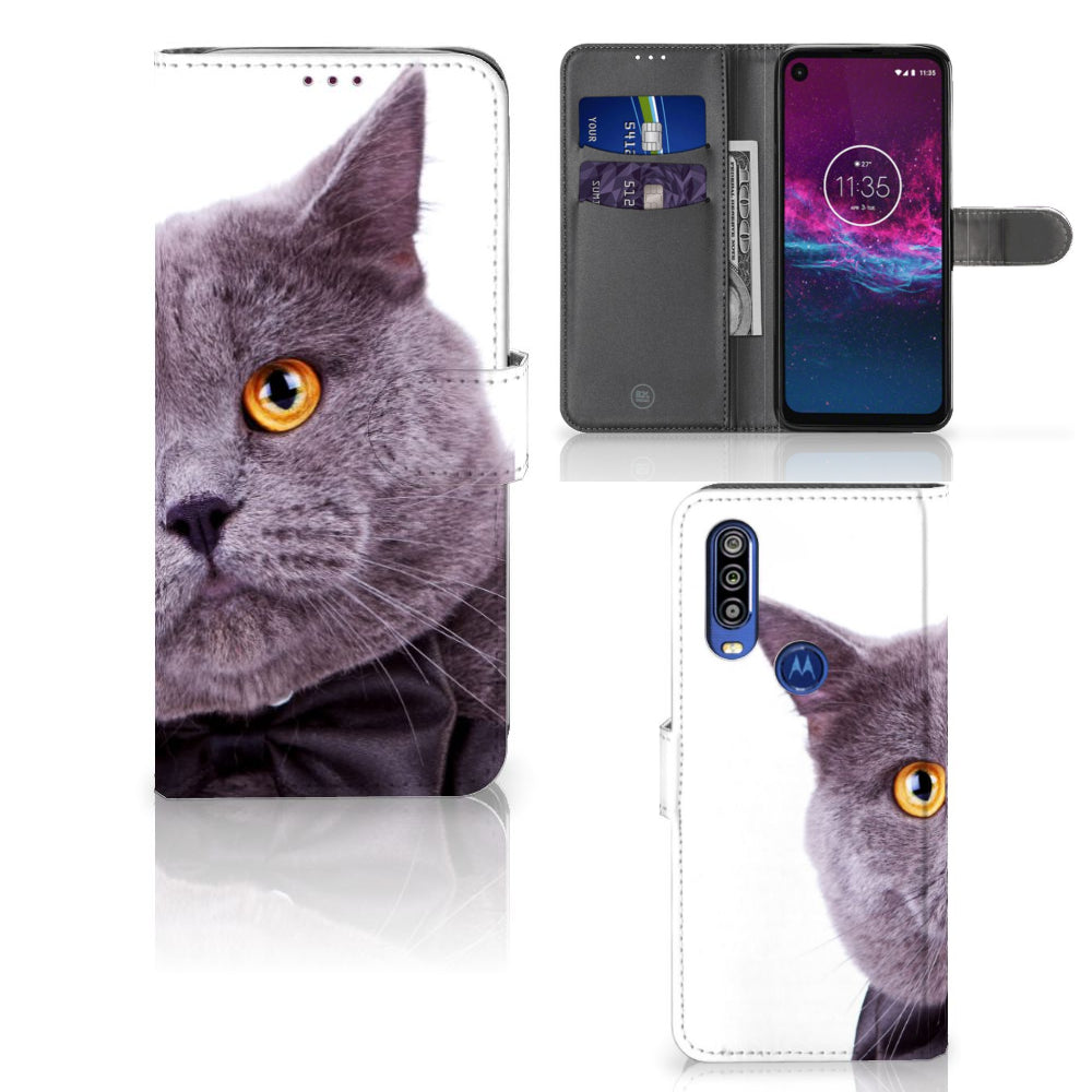 Motorola One Action Telefoonhoesje met Pasjes Kat