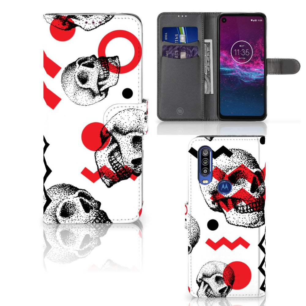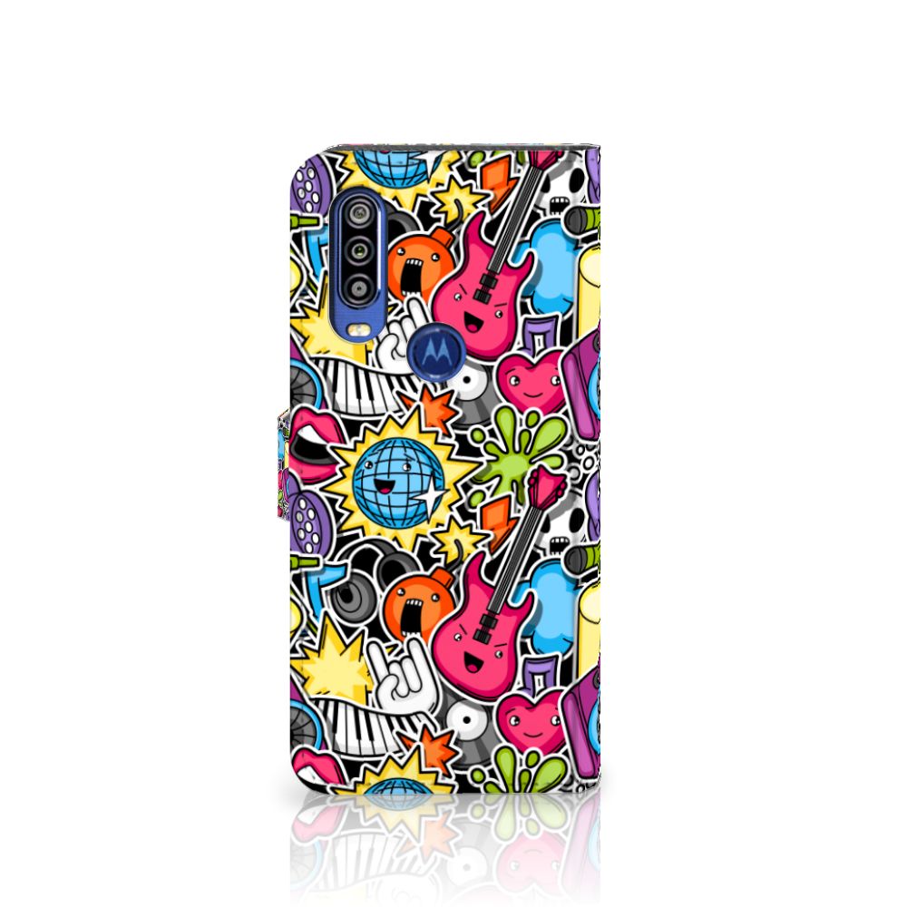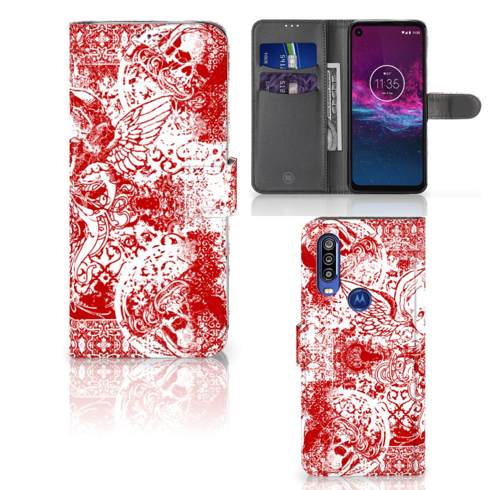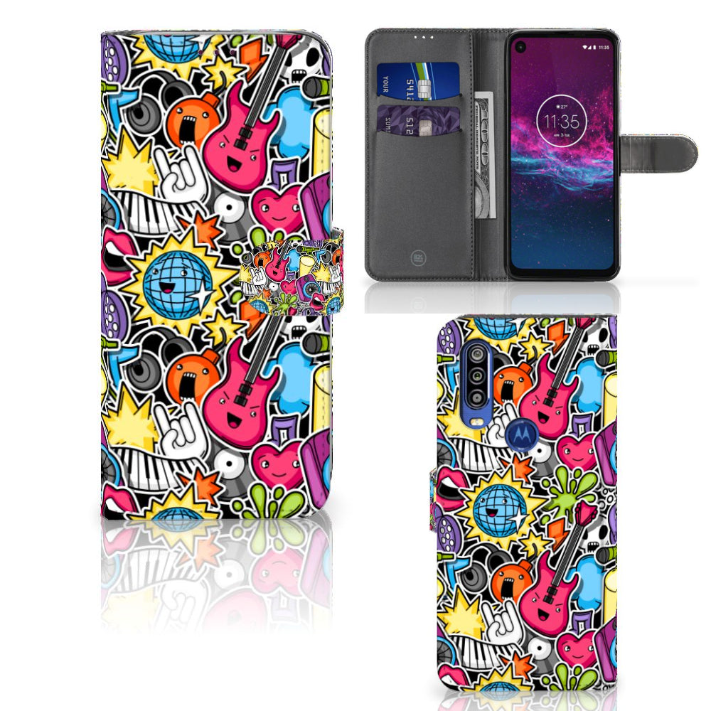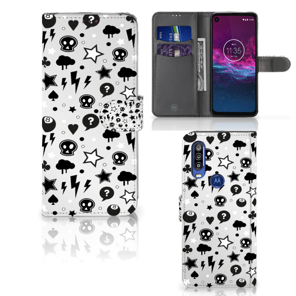 Motorola One Action Wallet Case met Pasjes Punk Rock