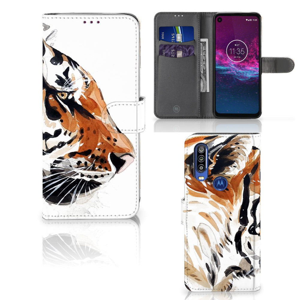 Hoesje Motorola One Action Watercolor Tiger