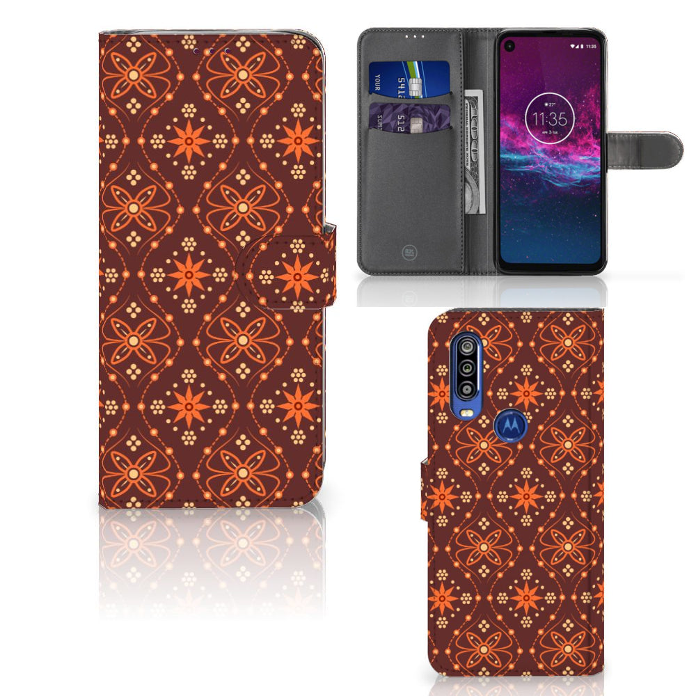 Motorola One Action Telefoon Hoesje Batik Brown