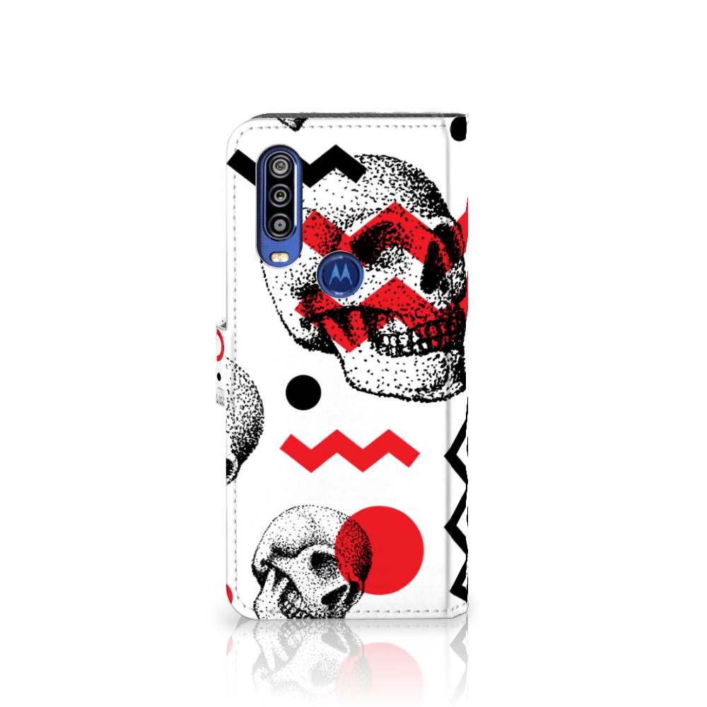Telefoonhoesje met Naam Motorola One Action Skull Red