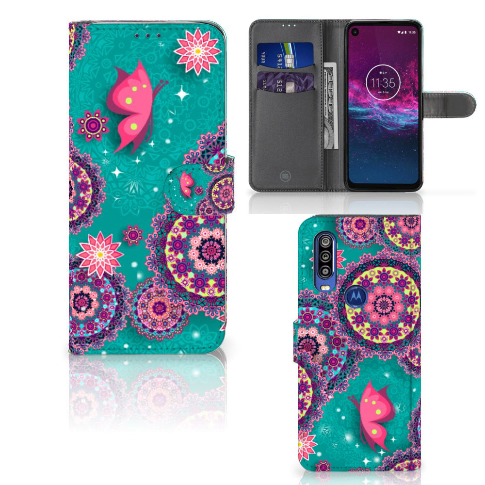 Motorola One Action Hoesje Cirkels en Vlinders