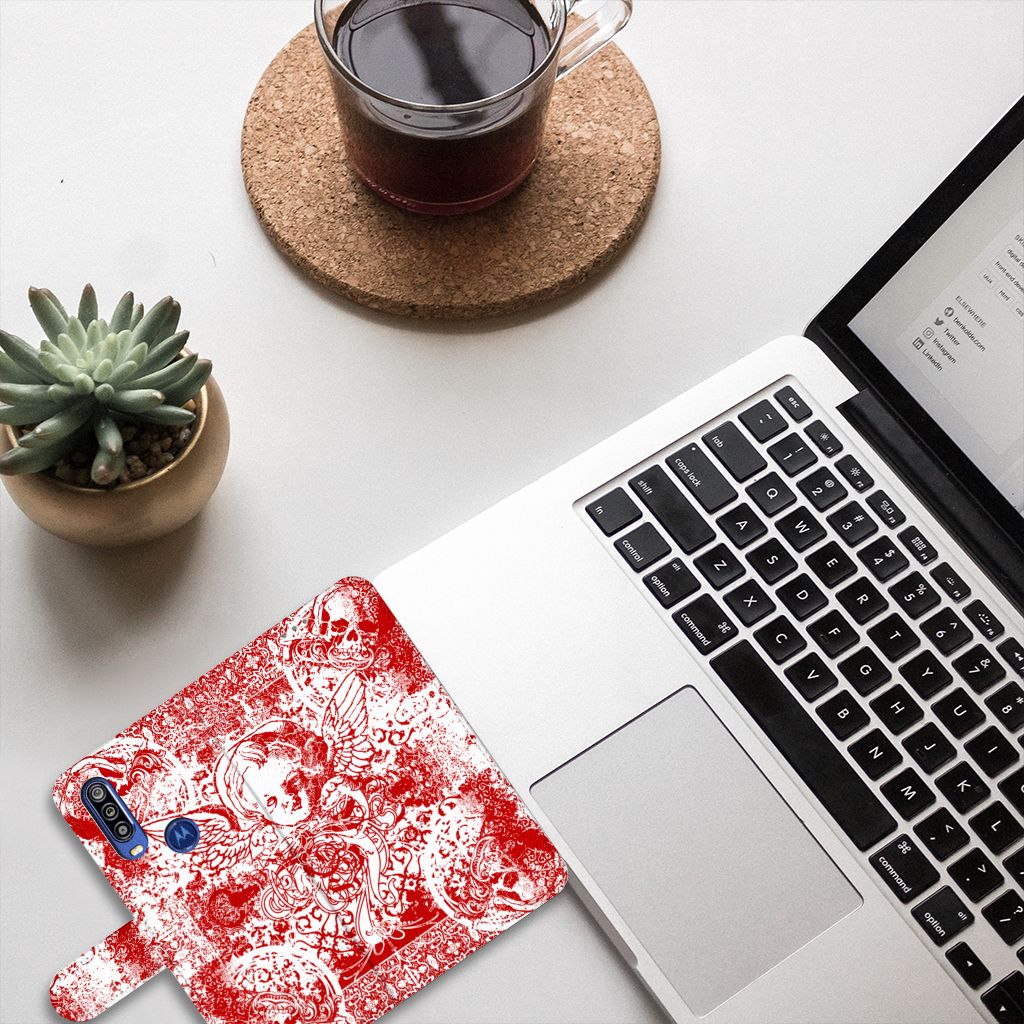 Telefoonhoesje met Naam Motorola One Action Angel Skull Rood