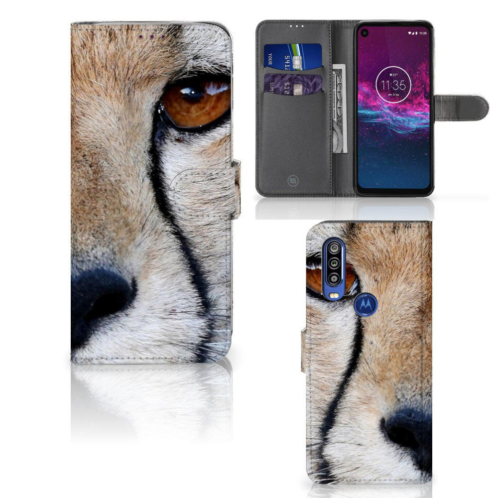 Motorola One Action Telefoonhoesje met Pasjes Cheetah