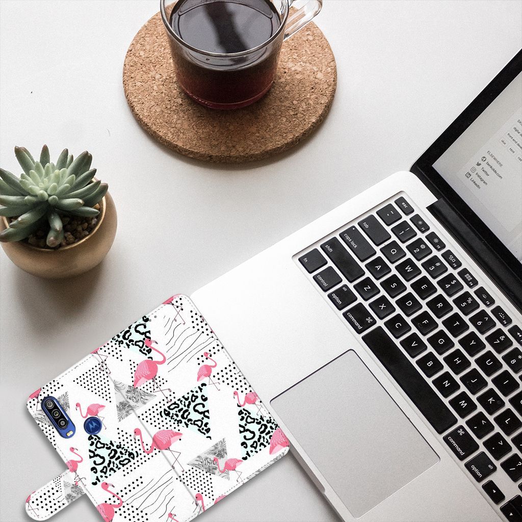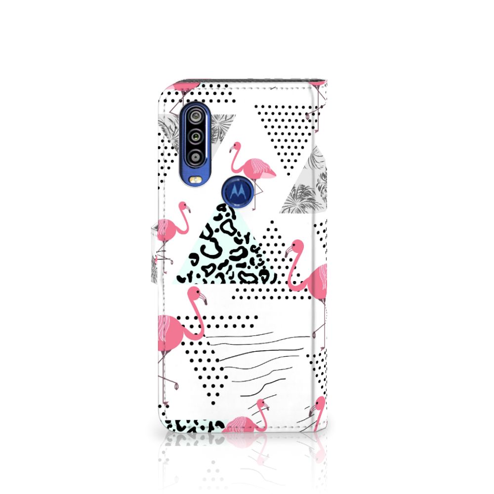 Motorola One Action Telefoonhoesje met Pasjes Flamingo Triangle