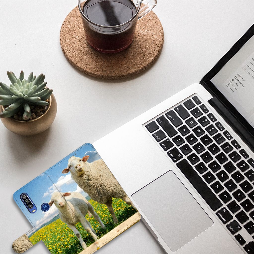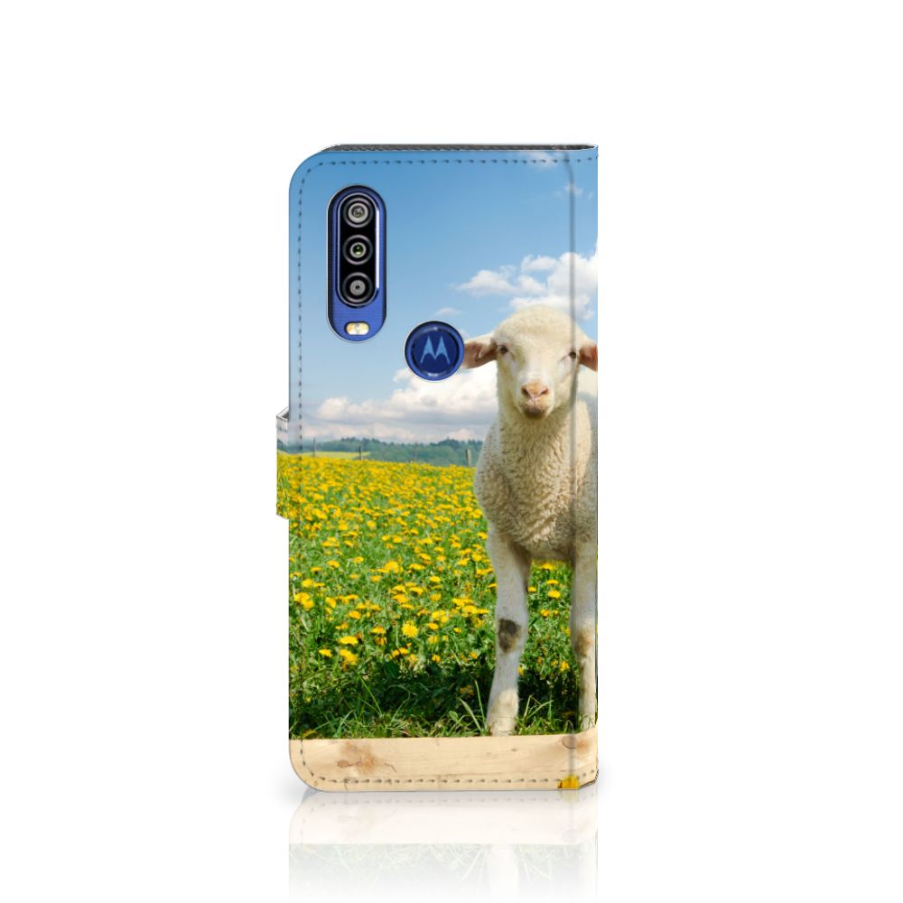 Motorola One Action Telefoonhoesje met Pasjes Schaap en Lammetje