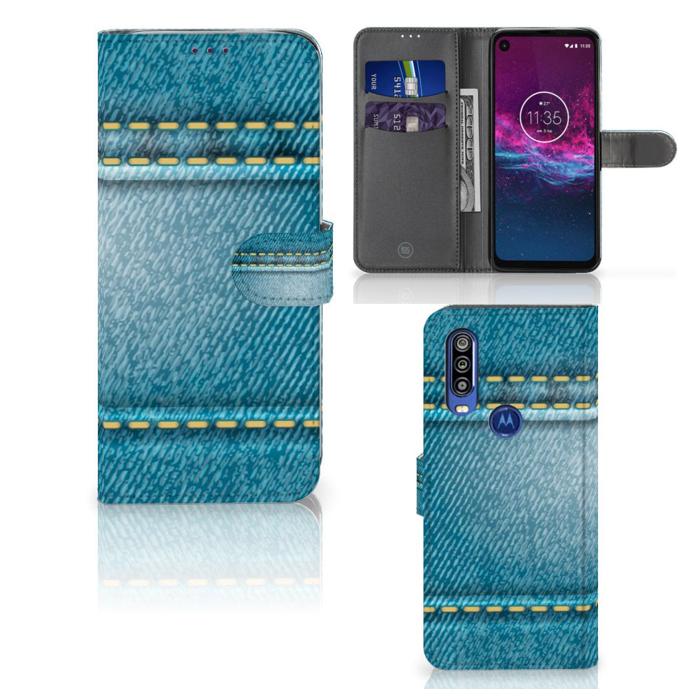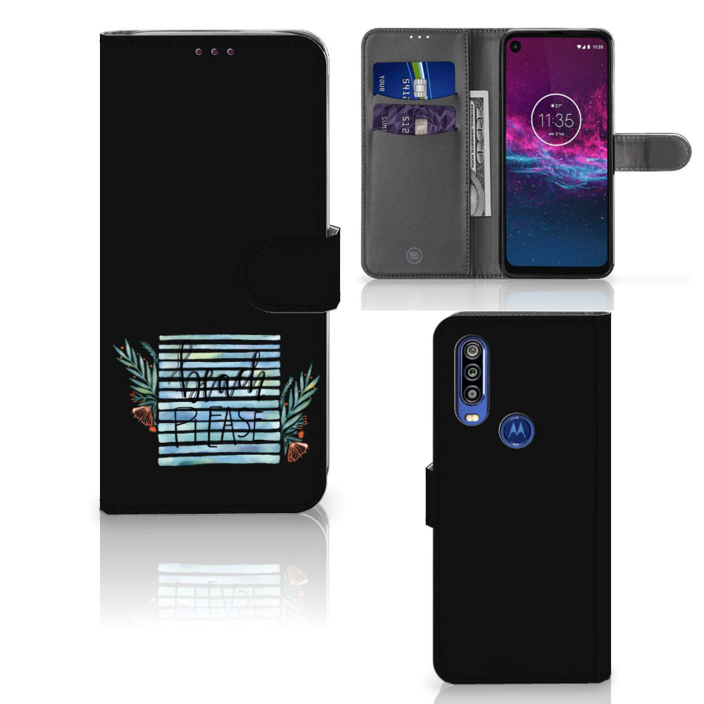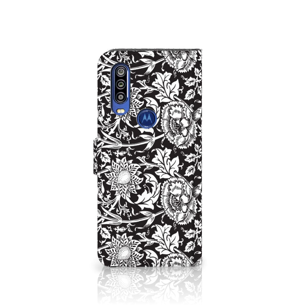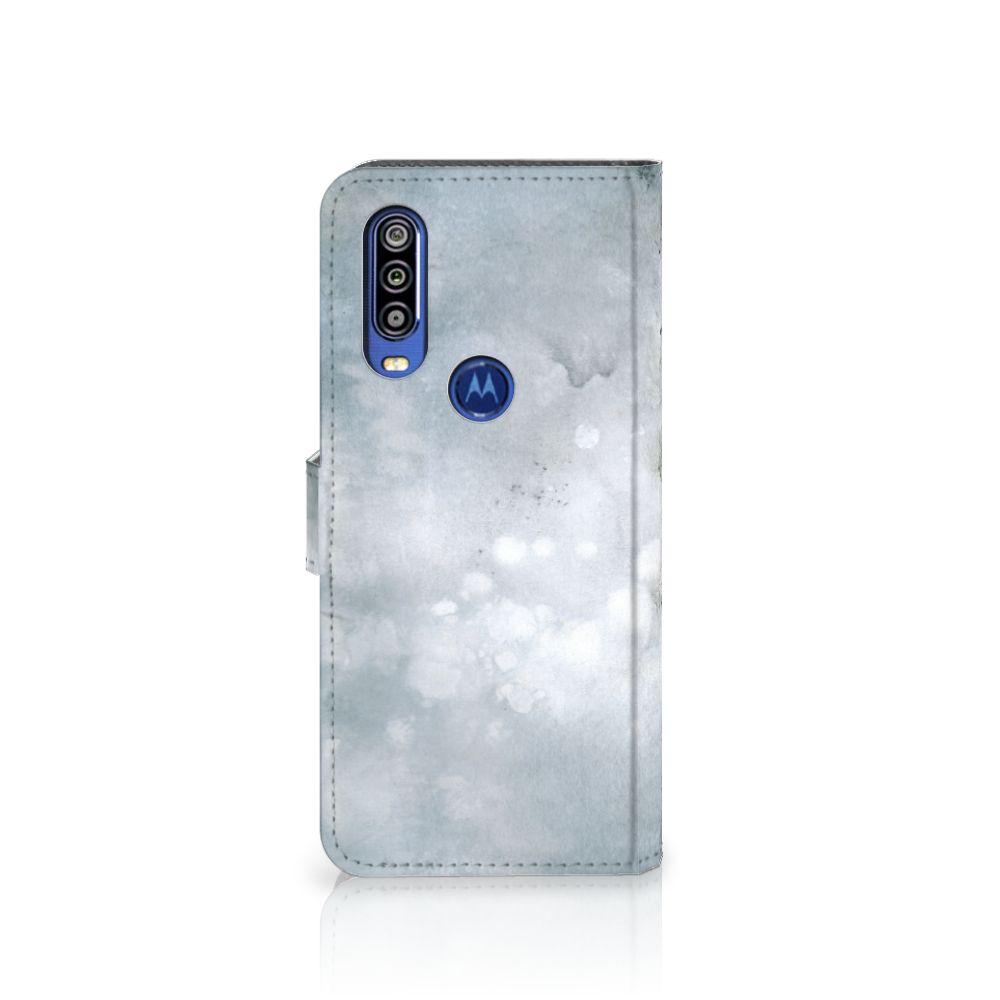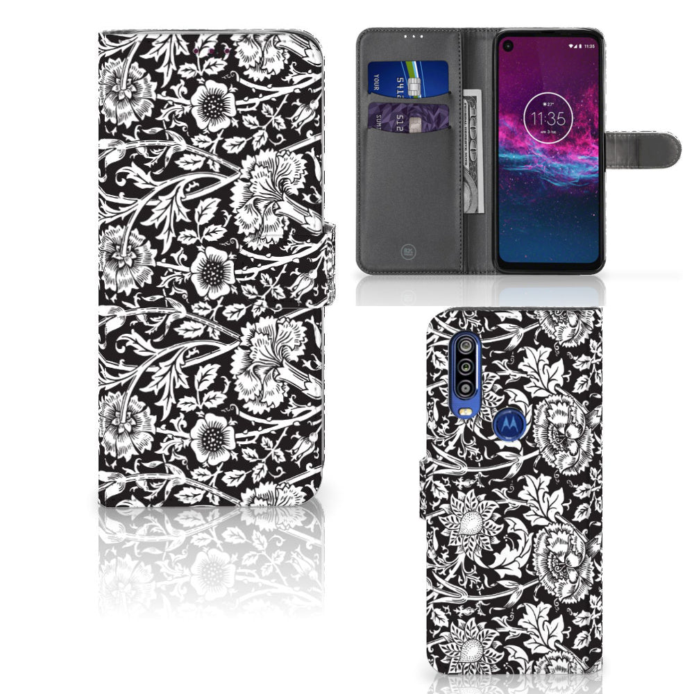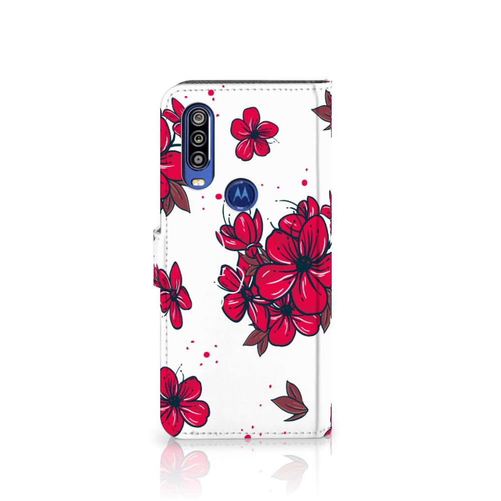 Motorola One Action Portemonnee Hoesje Flowers Blue DTMP