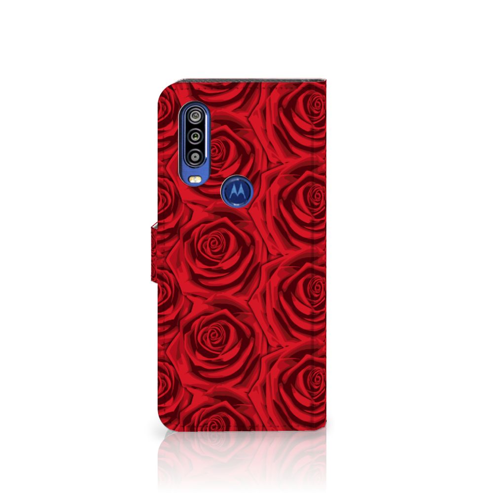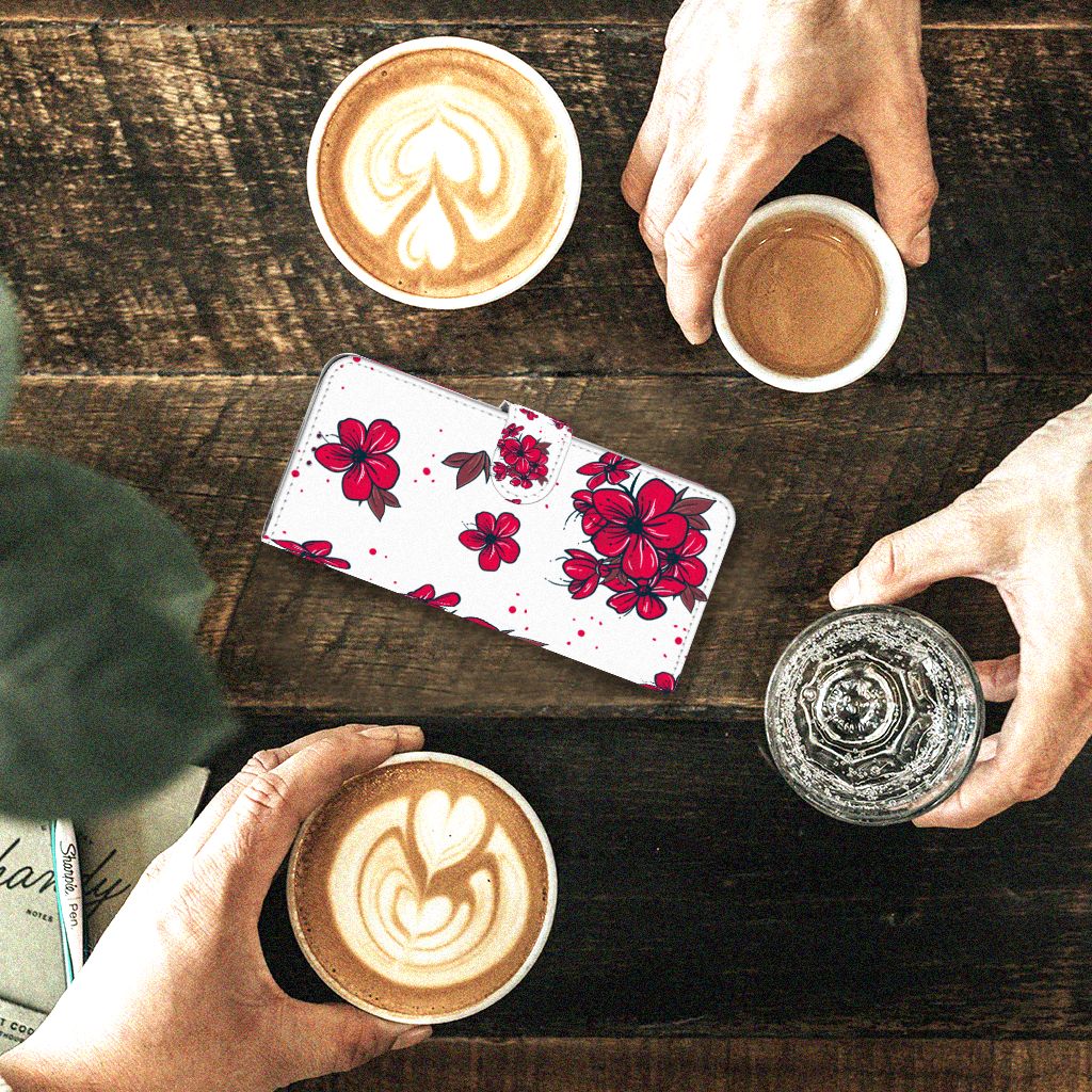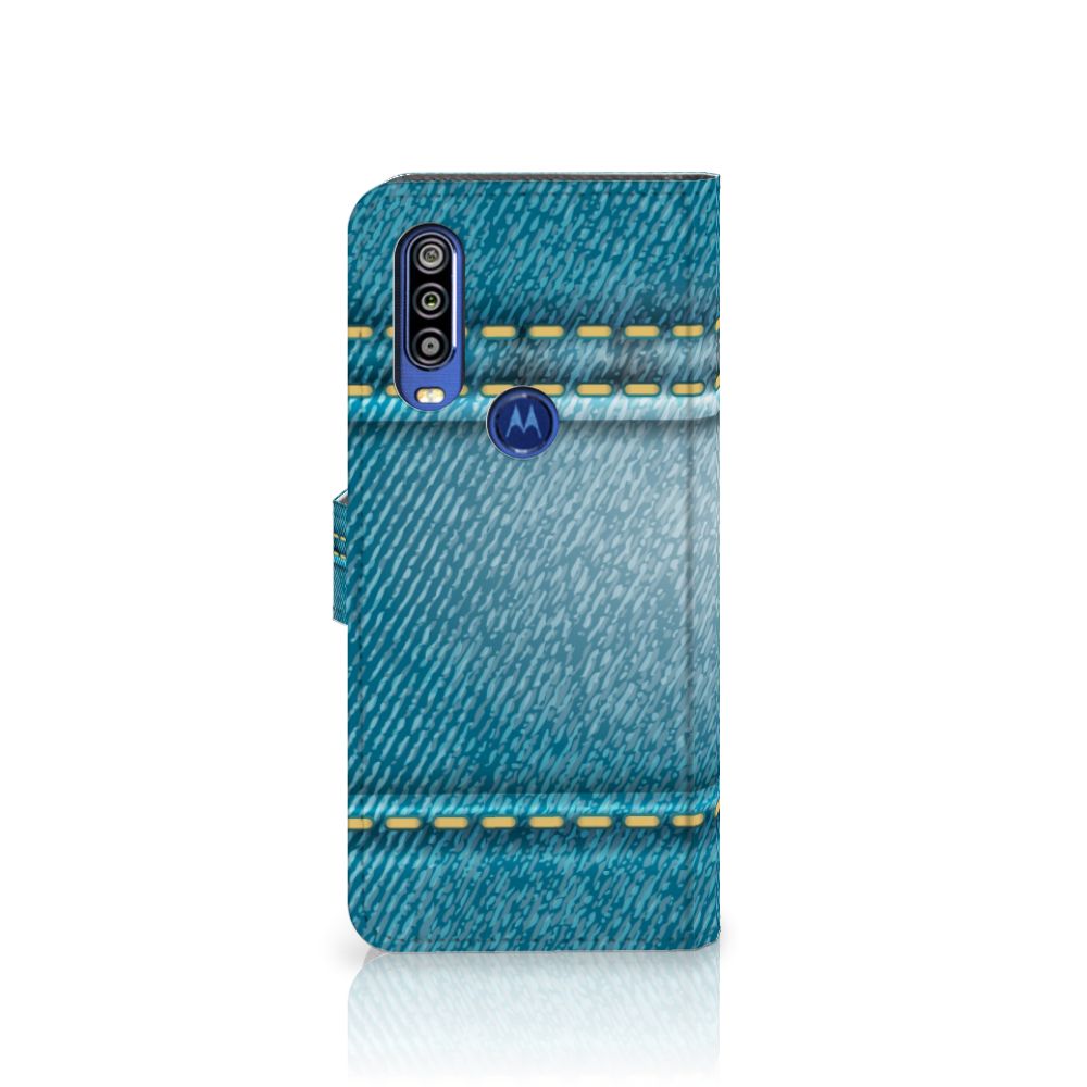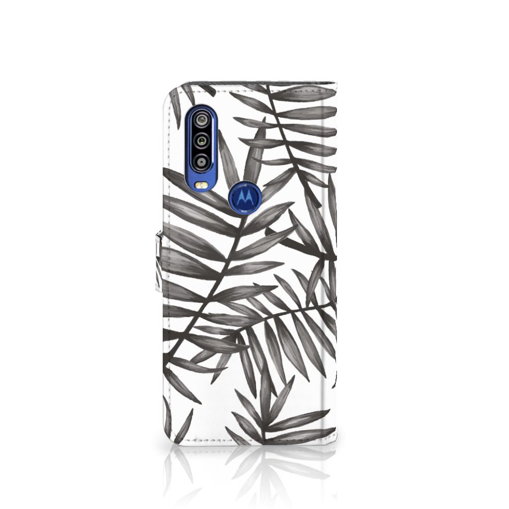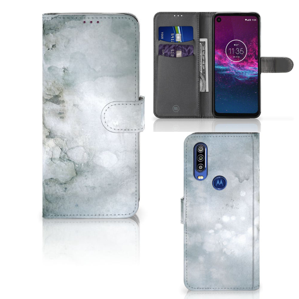 Motorola One Action Portemonnee Hoesje Flowers Blue DTMP
