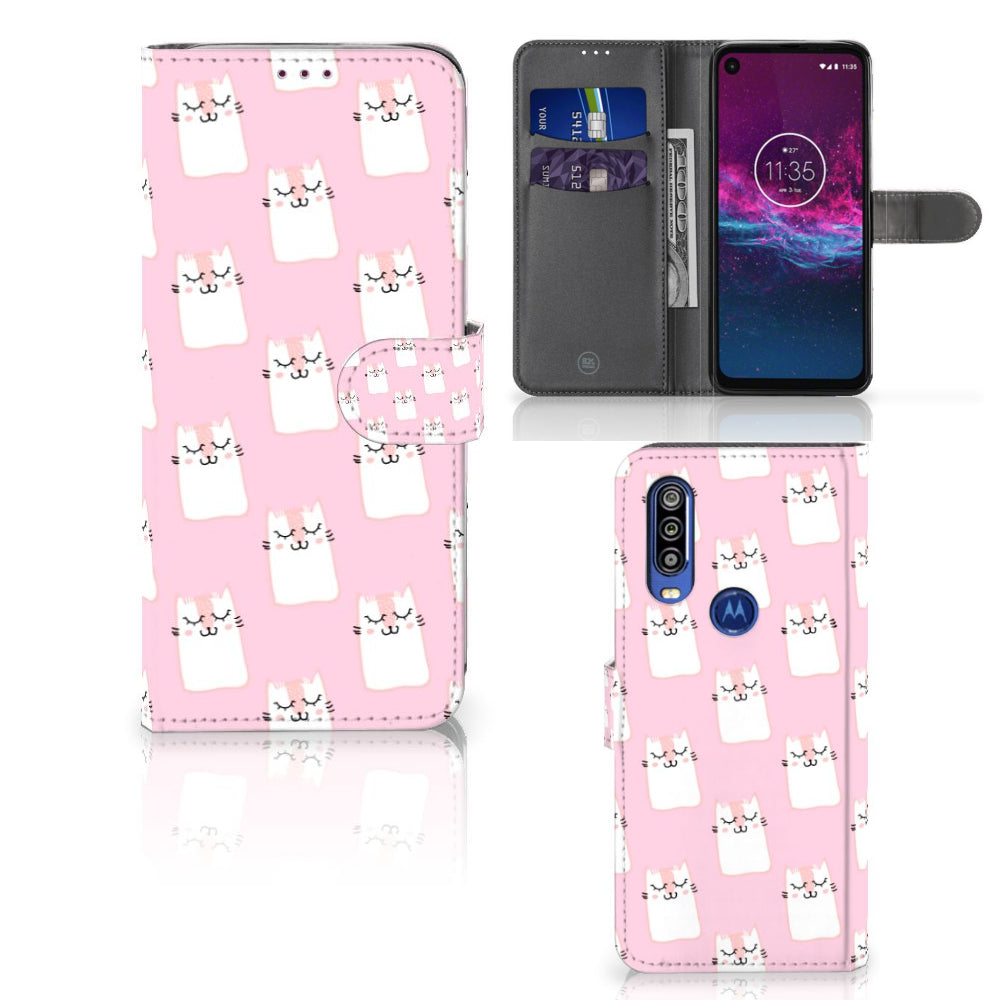 Motorola One Action Telefoonhoesje met Pasjes Sleeping Cats