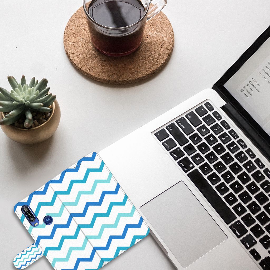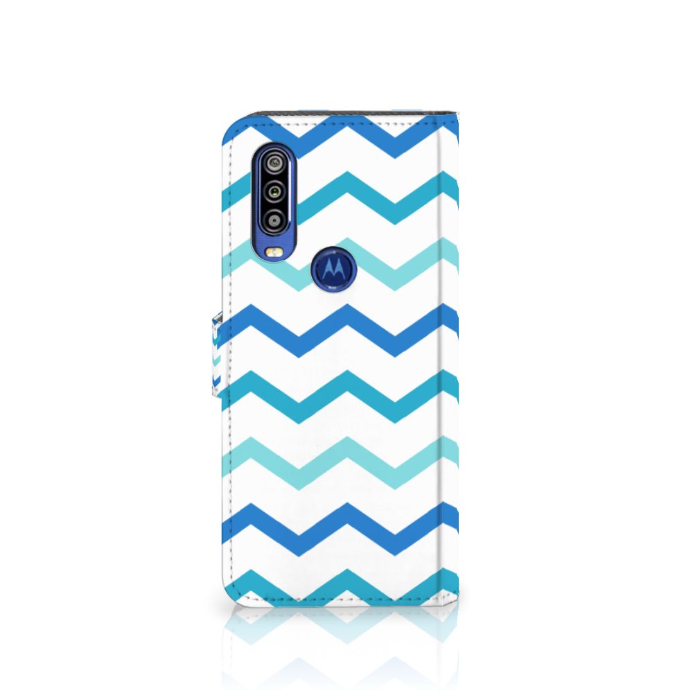 Motorola One Action Telefoon Hoesje Zigzag Blauw
