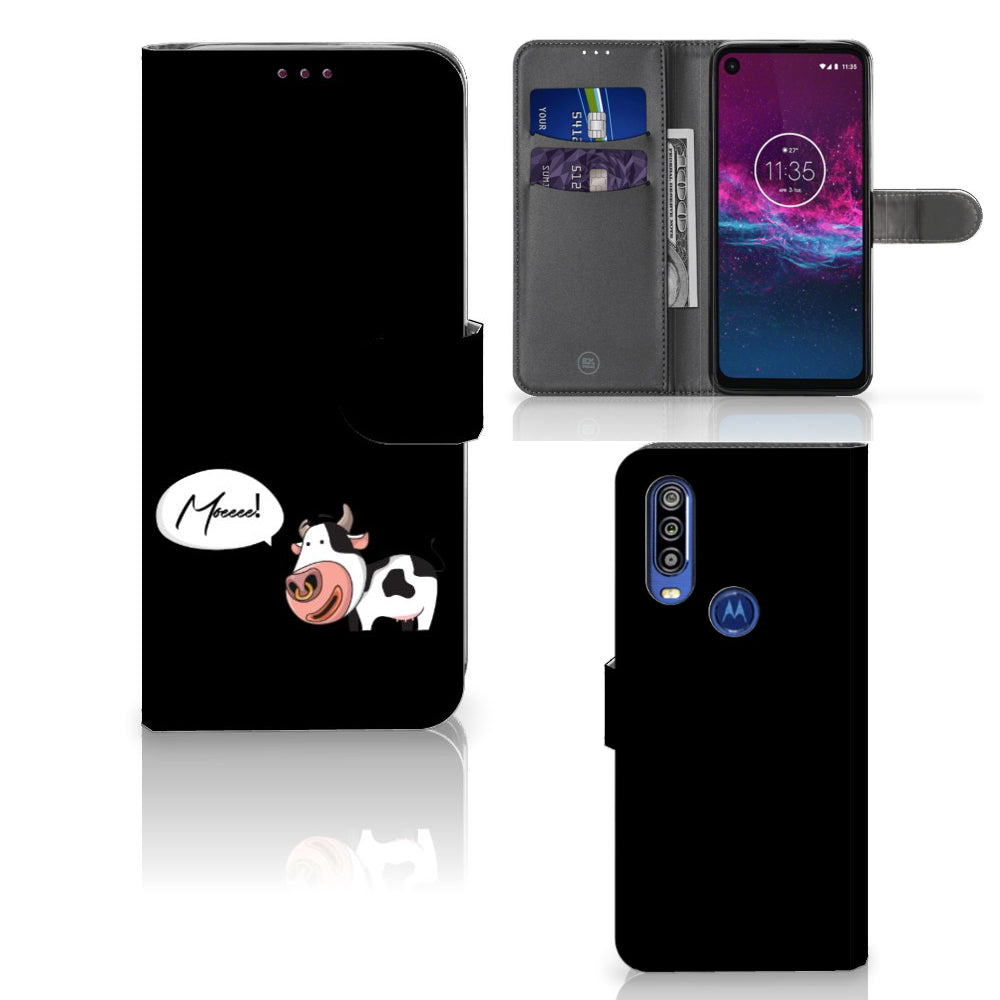 Motorola One Action Telefoonhoesje met Pasjes Koe