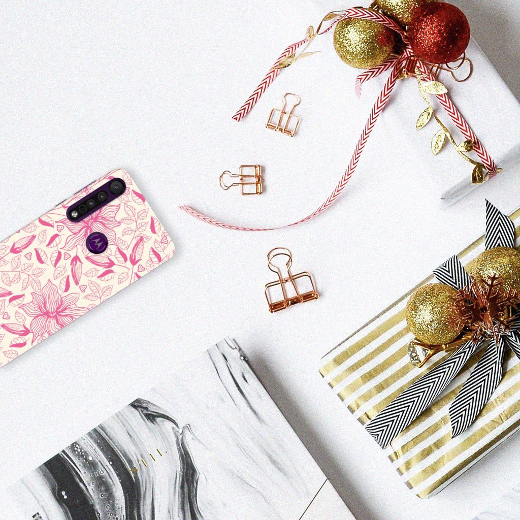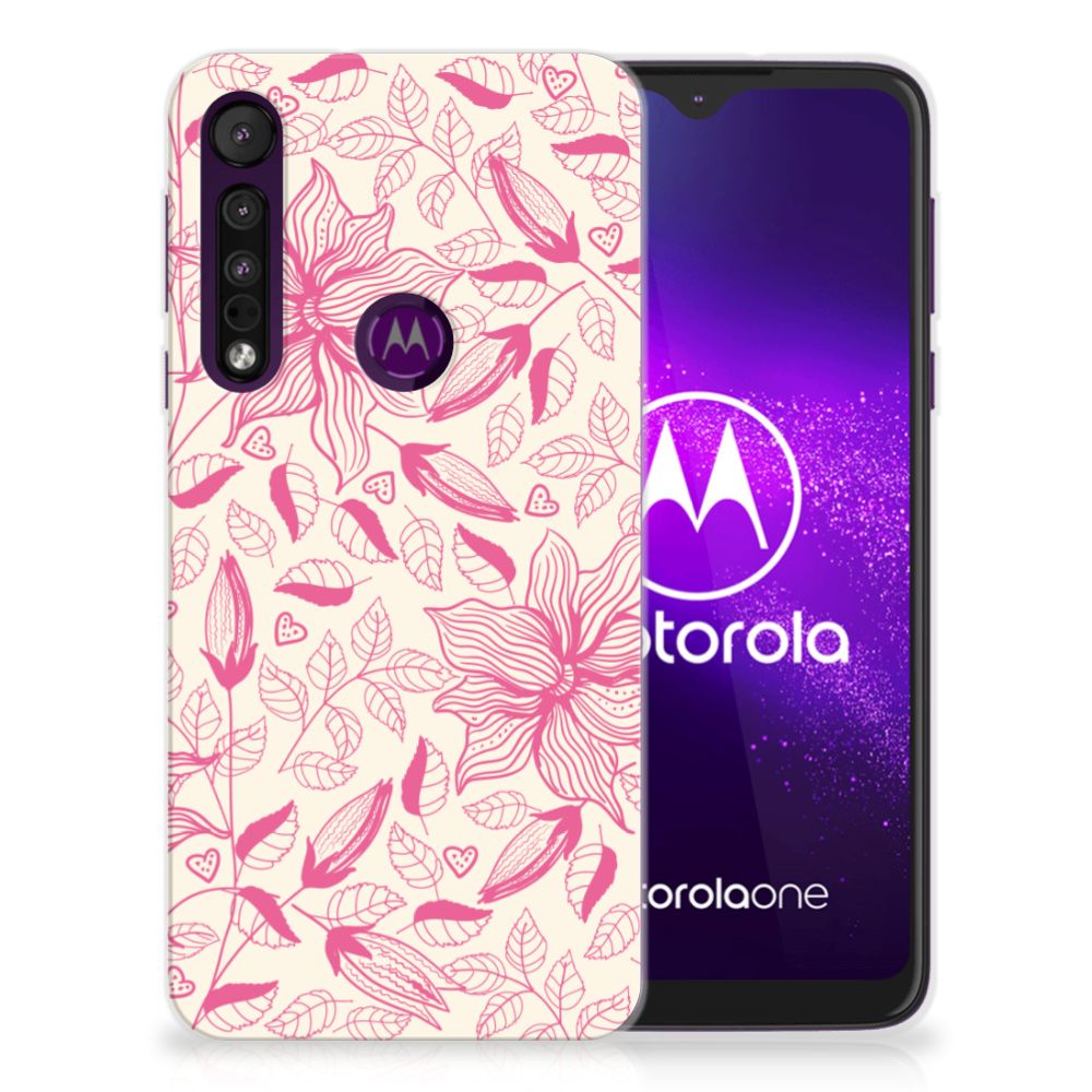 Motorola One Macro Silicone-hoesje Flowers Pink DTMP
