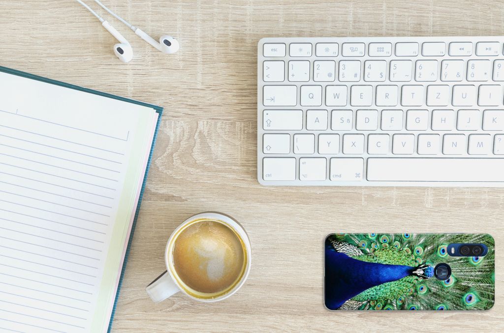 Motorola One Vision TPU Hoesje Pauw met Bloemen