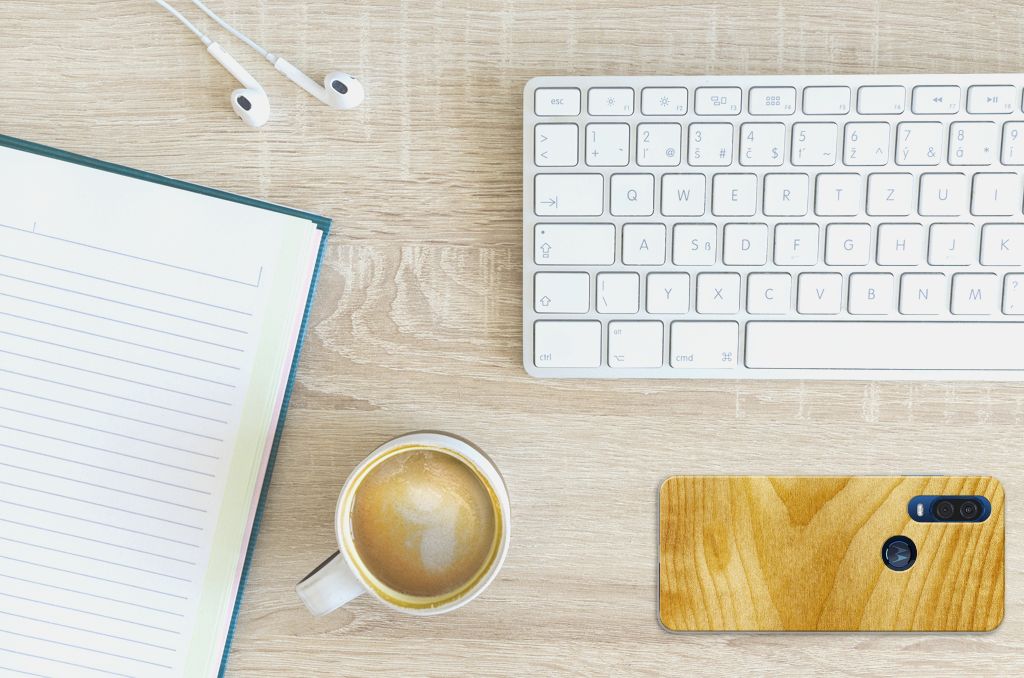 Motorola One Vision Bumper Hoesje Licht Hout