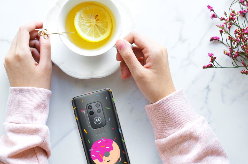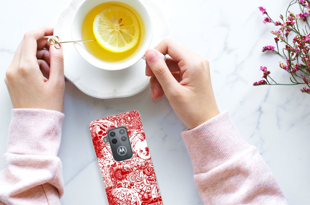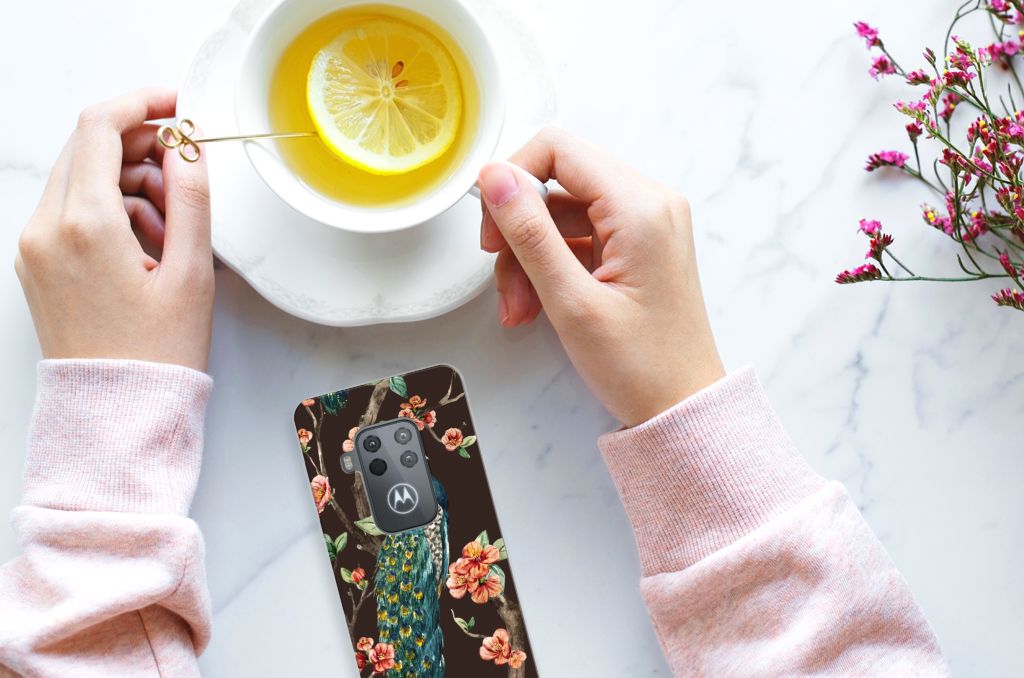 Motorola One Zoom TPU Hoesje Pauw met Bloemen