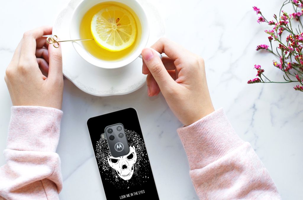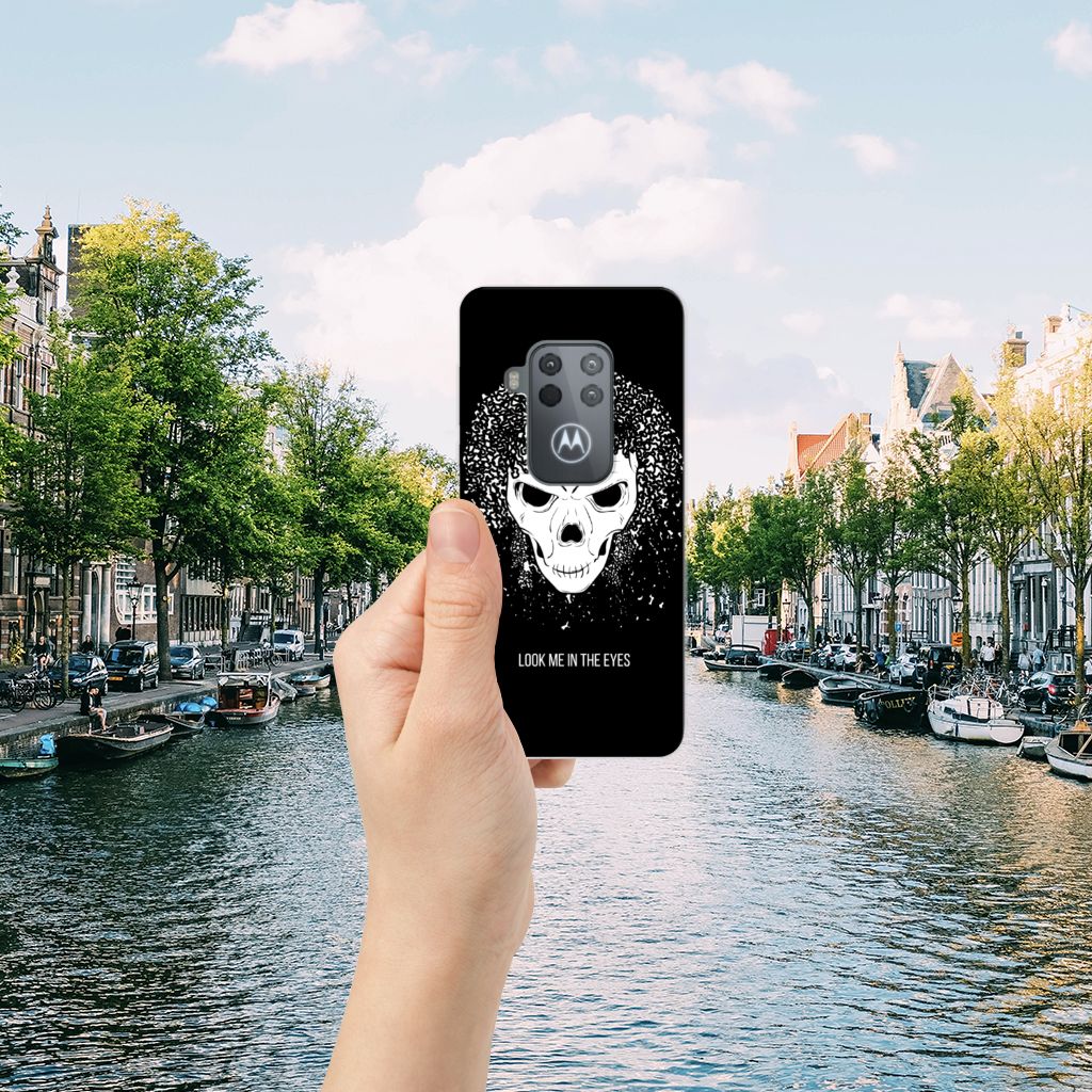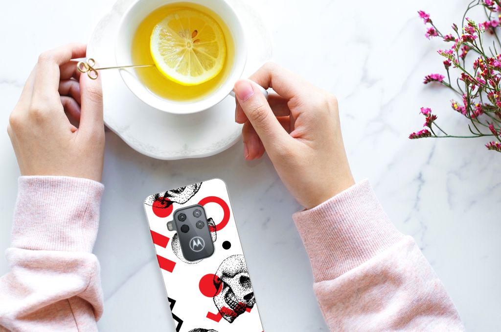 Silicone Back Case Motorola One Zoom Angel Skull Rood