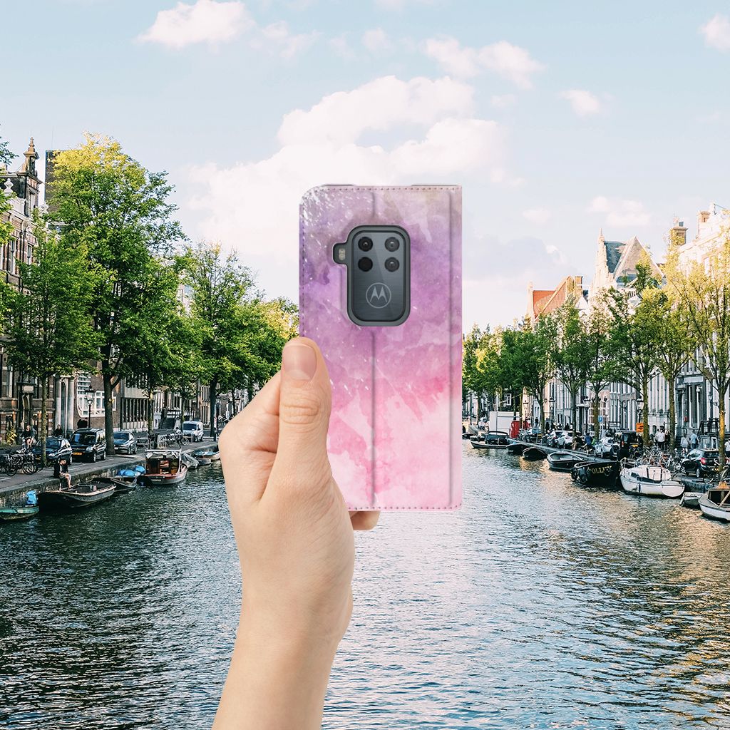 Motorola One Zoom Standcase Marble Pink - Origineel Cadeau Vriendin