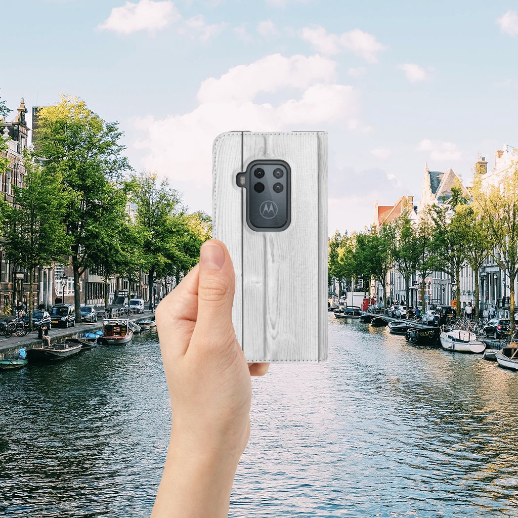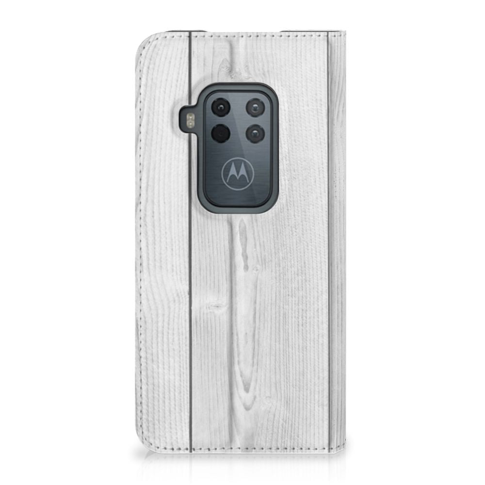 Motorola One Zoom Book Wallet Case White Wood