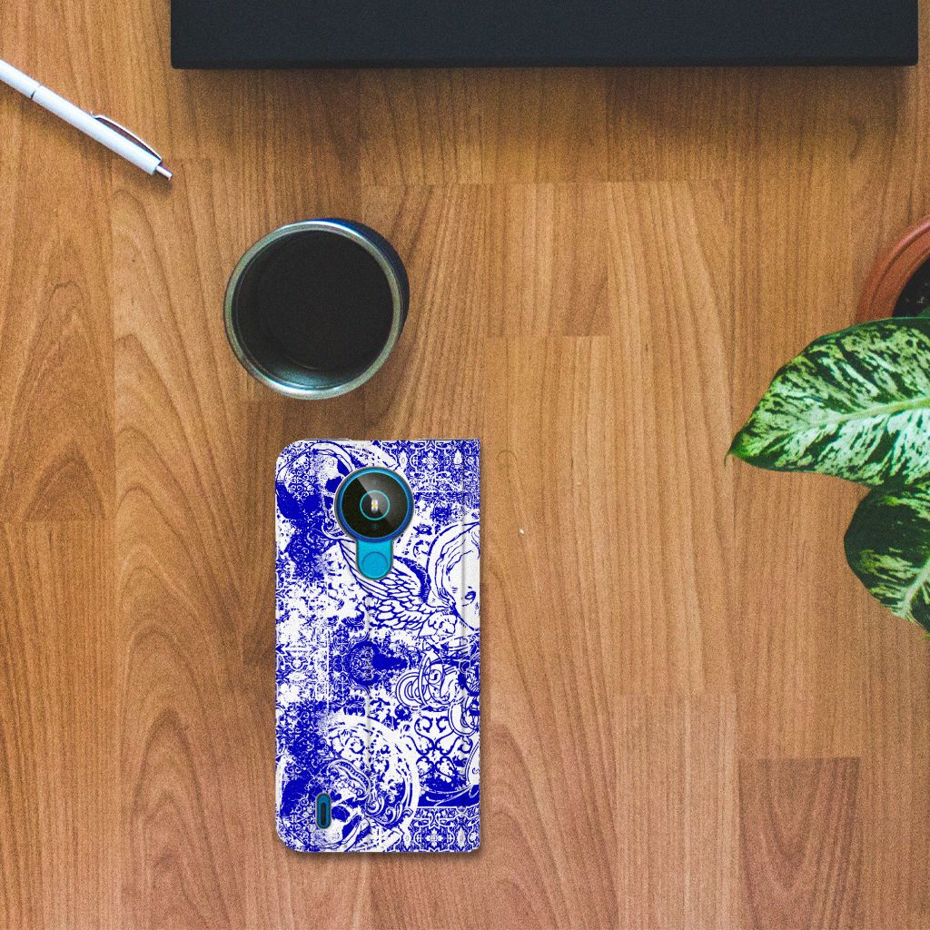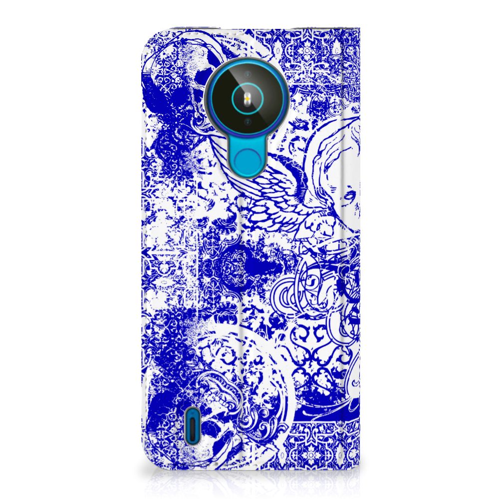 Mobiel BookCase Nokia 1.4 Angel Skull Blauw