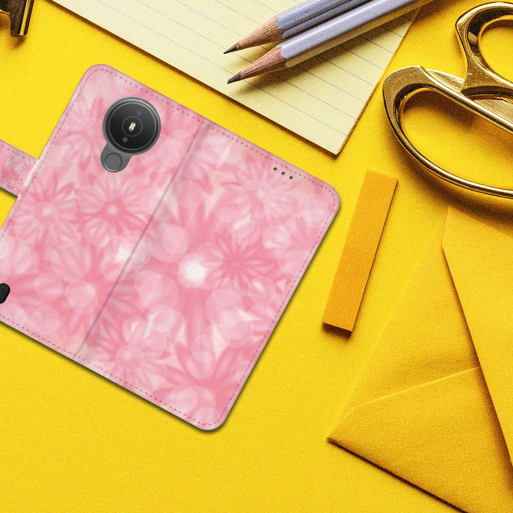 Nokia 1.4 Portemonnee Hoesje Flowers Pink DTMP