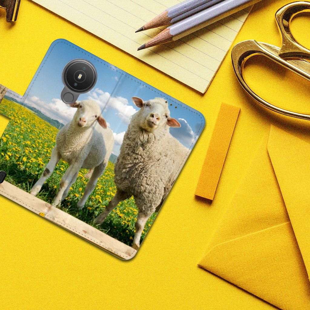 Nokia 1.4 Telefoonhoesje met Pasjes Schaap en Lammetje