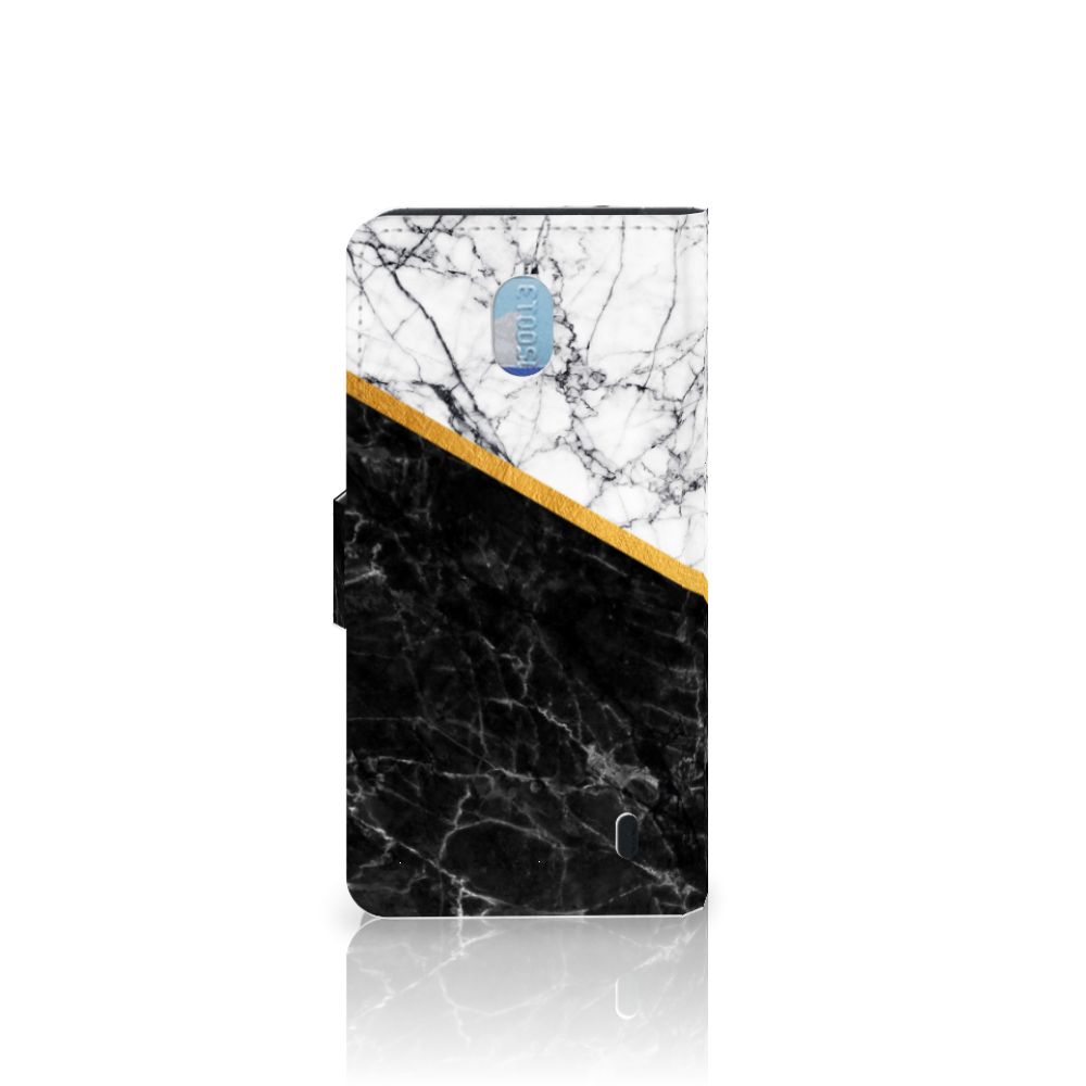 Nokia 1 Plus Bookcase Marmer Wit Zwart - Origineel Cadeau Man