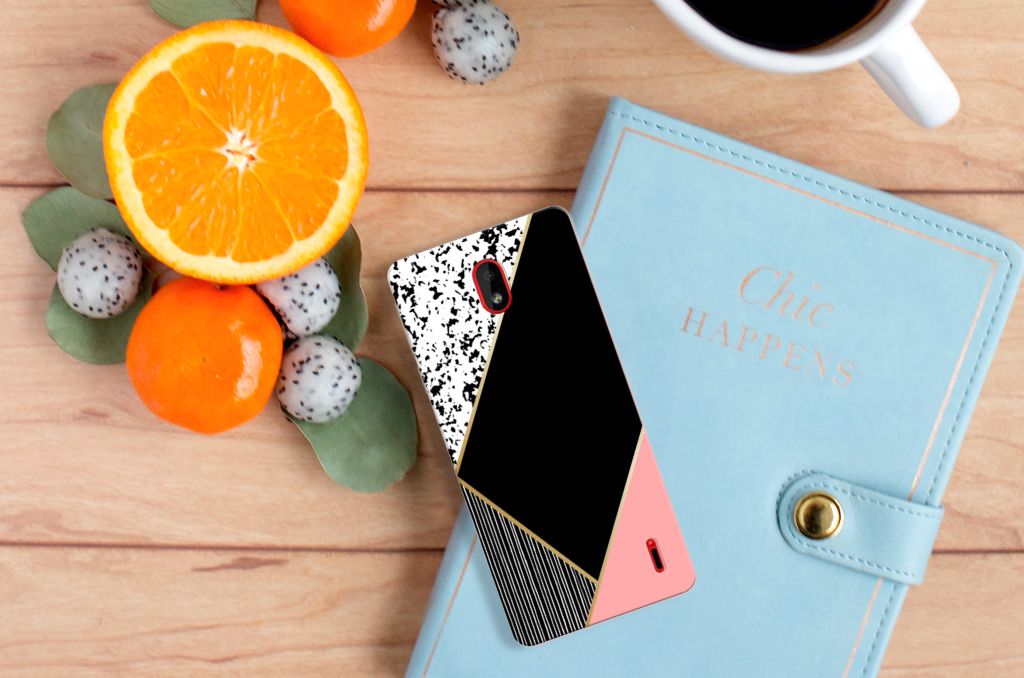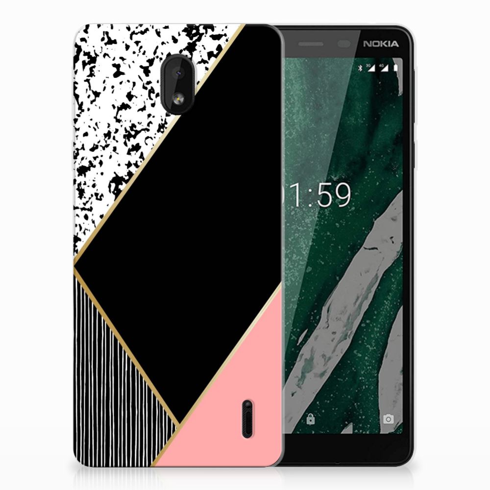 Nokia 1 Plus TPU Hoesje Zwart Roze Vormen