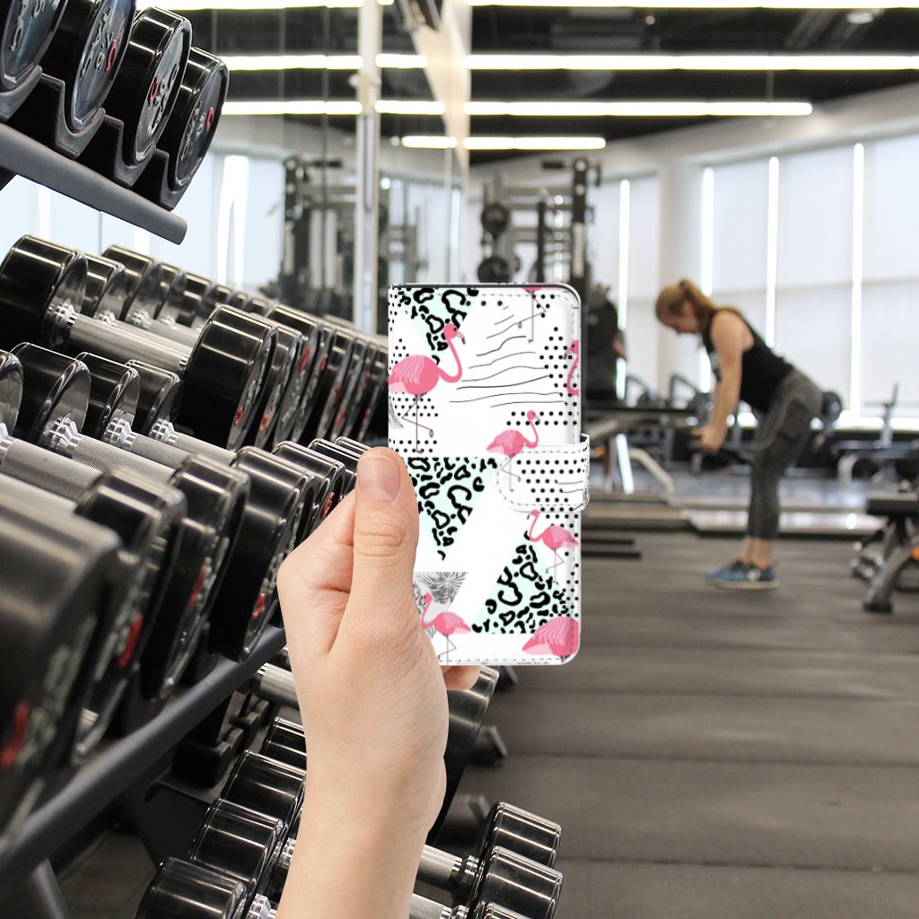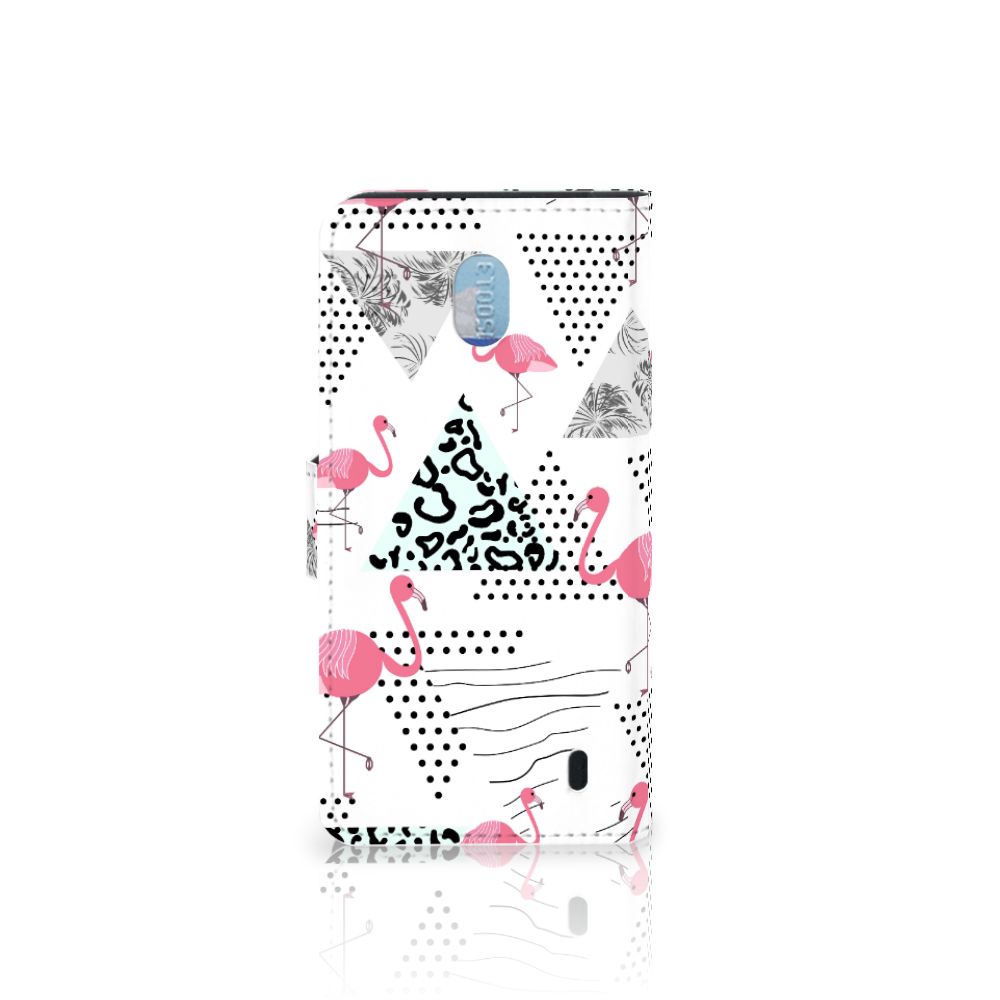 Nokia 1 Plus Telefoonhoesje met Pasjes Flamingo Triangle