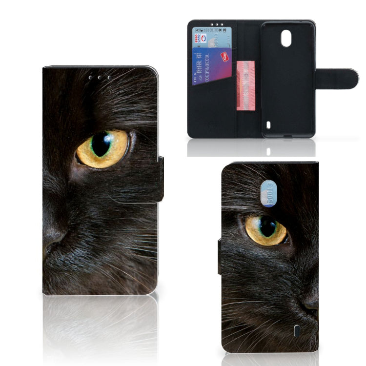 Nokia 1 Plus Telefoonhoesje met Pasjes Zwarte Kat