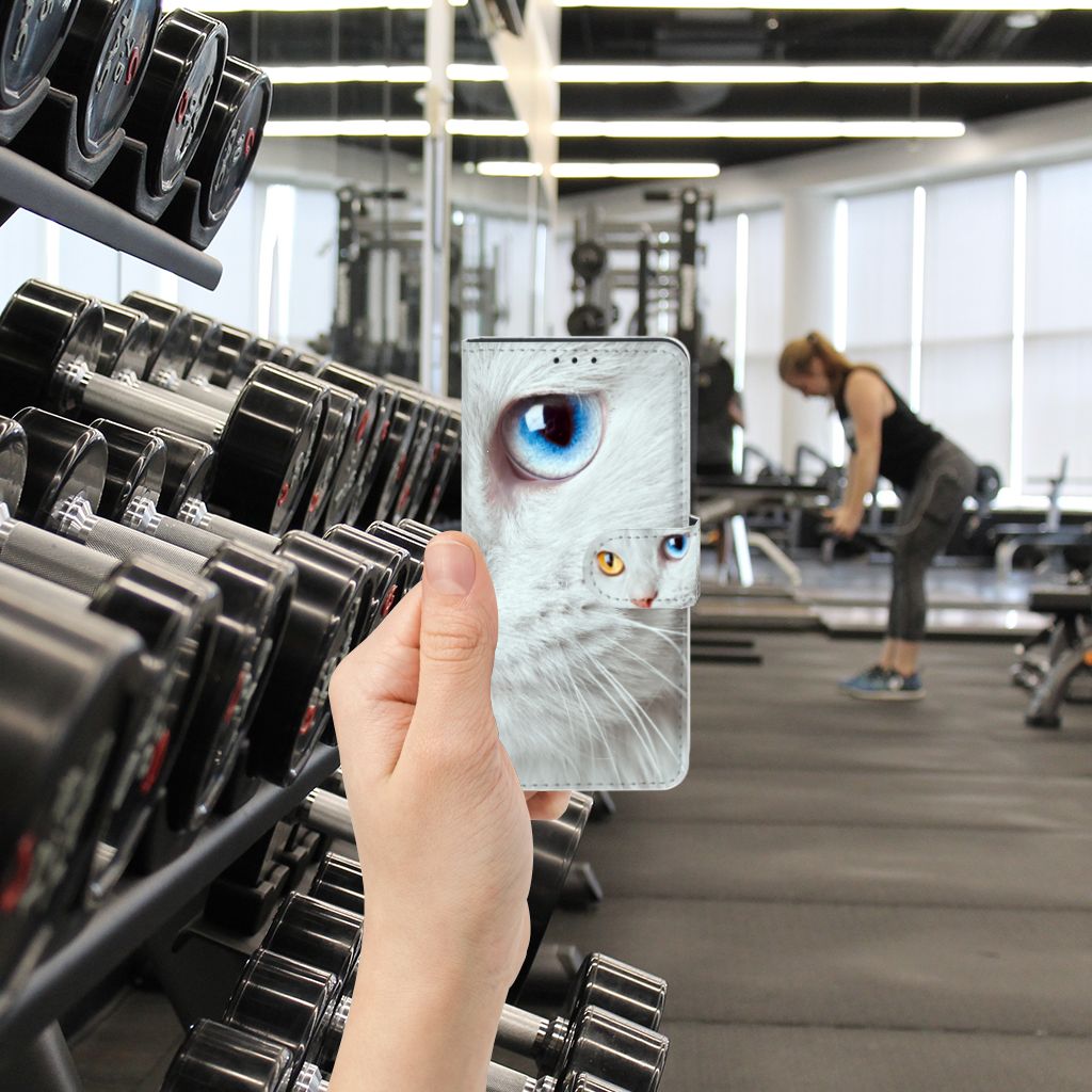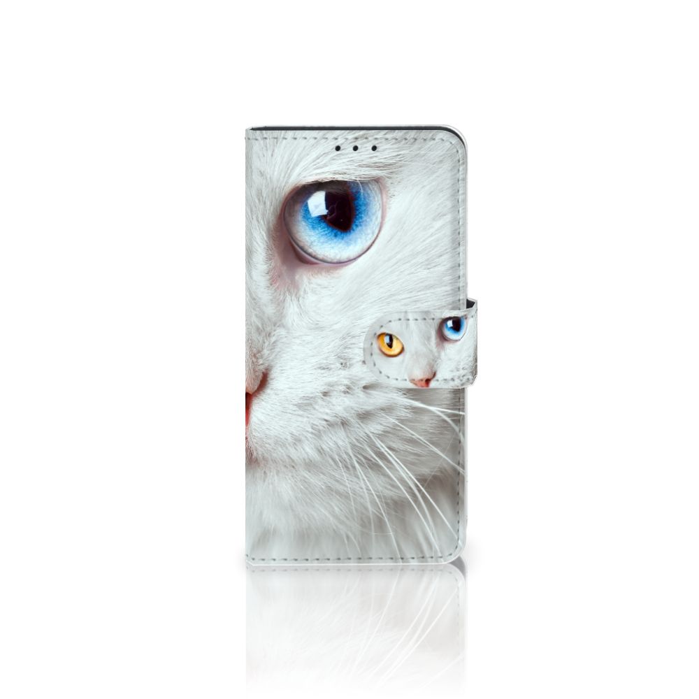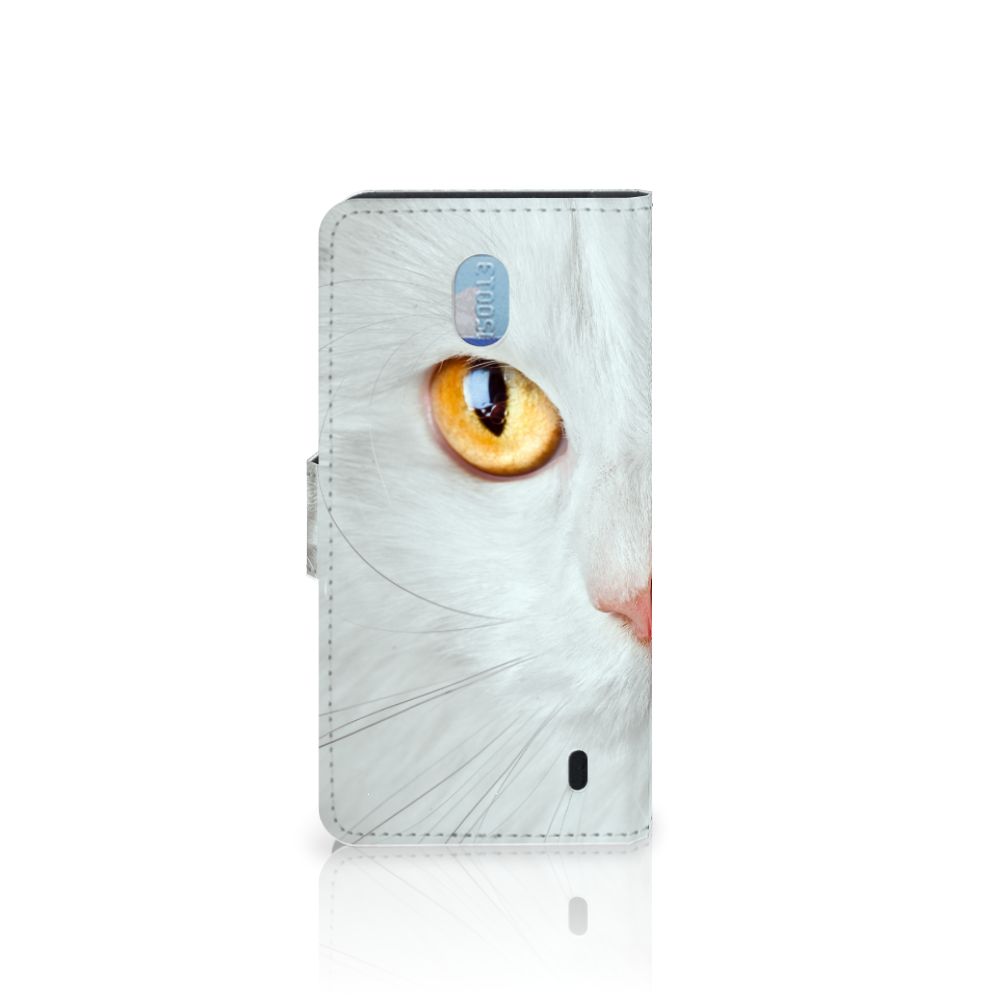 Nokia 1 Plus Telefoonhoesje met Pasjes Witte Kat