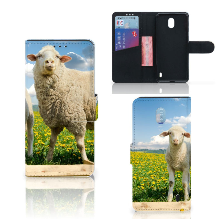 Nokia 1 Plus Telefoonhoesje met Pasjes Schaap en Lammetje
