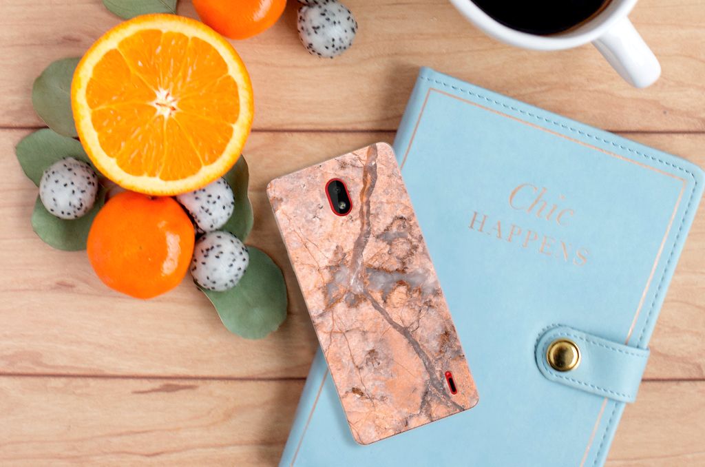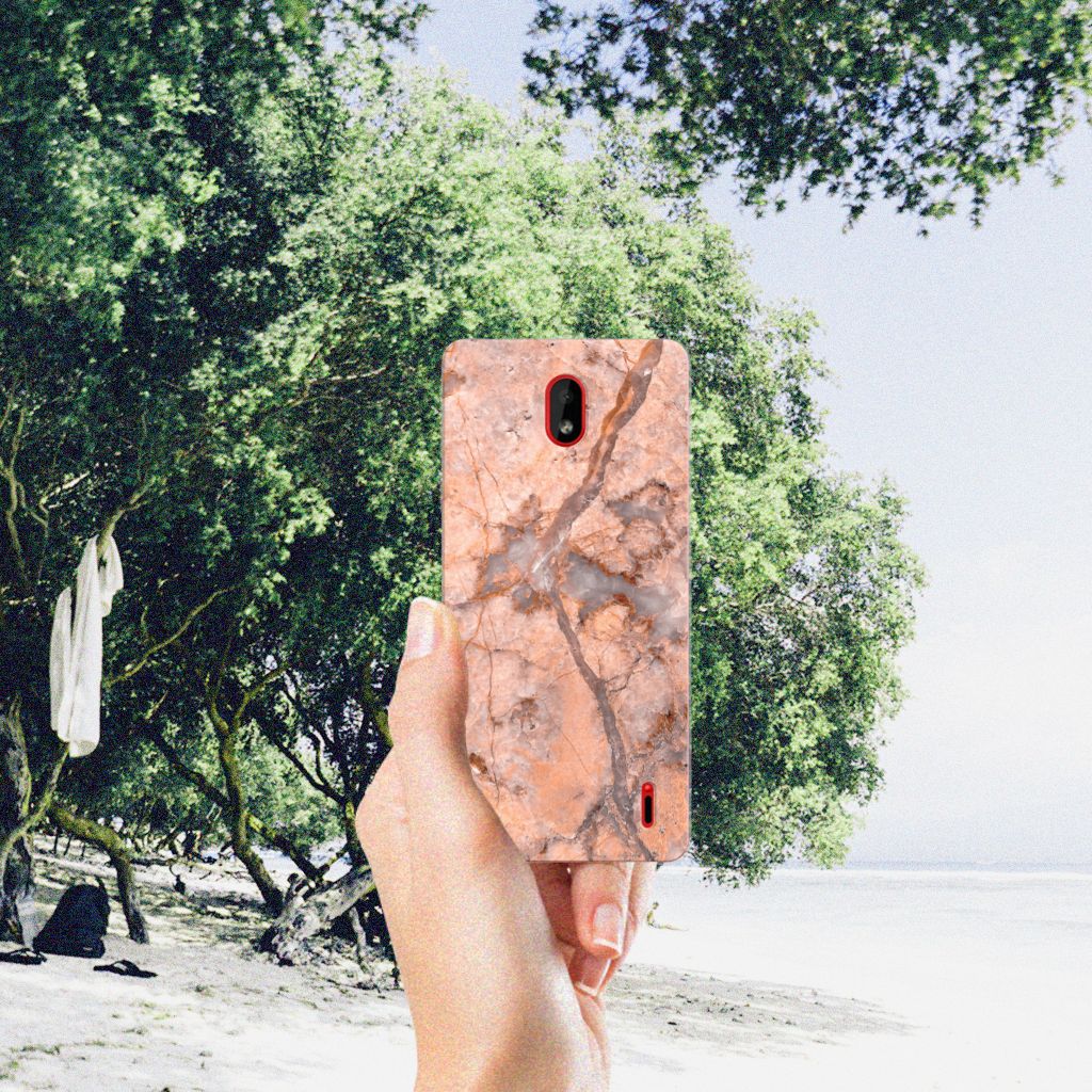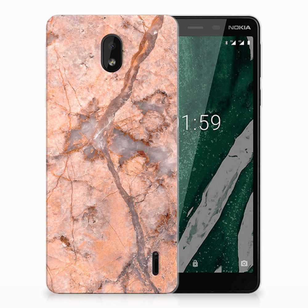 Nokia 1 Plus TPU Siliconen Hoesje Marmer Oranje