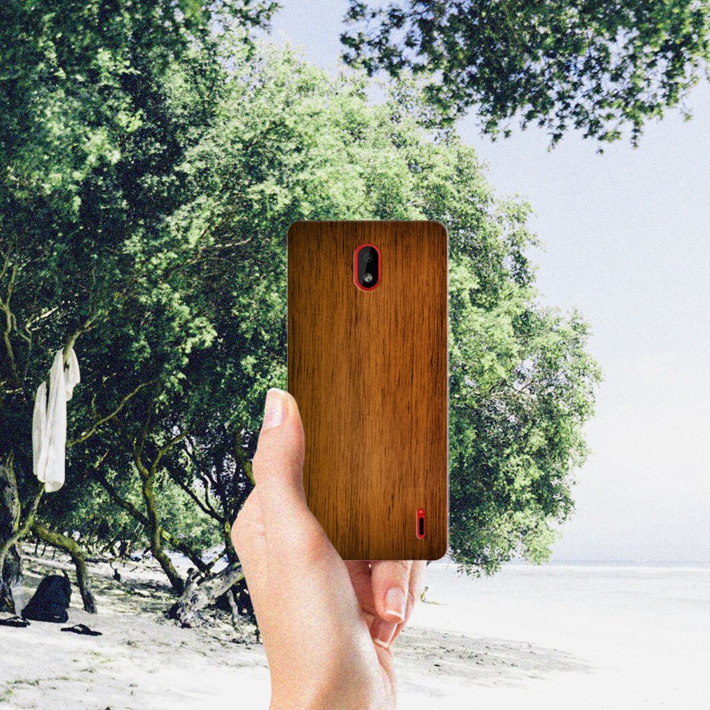 Nokia 1 Plus Bumper Hoesje Donker Hout