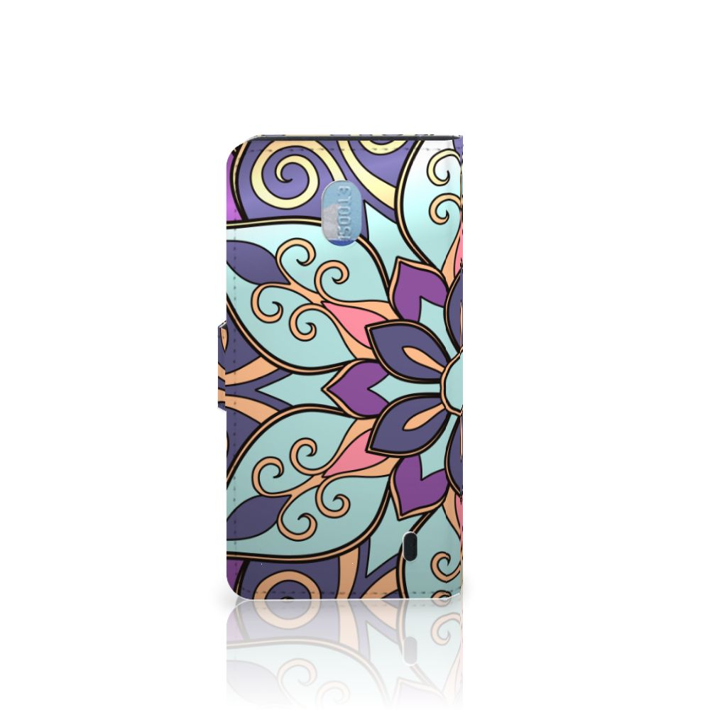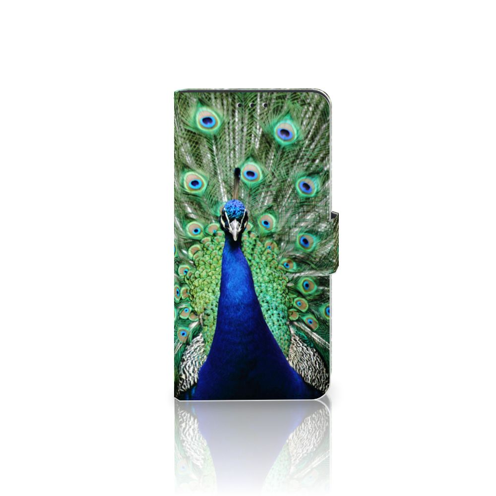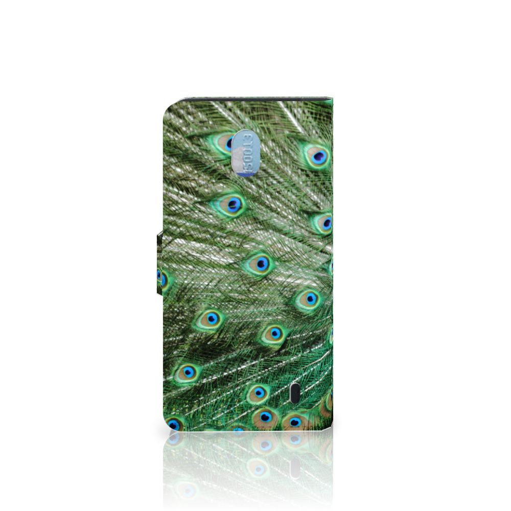 Nokia 1 Plus Telefoonhoesje met Pasjes Pauw met Bloemen