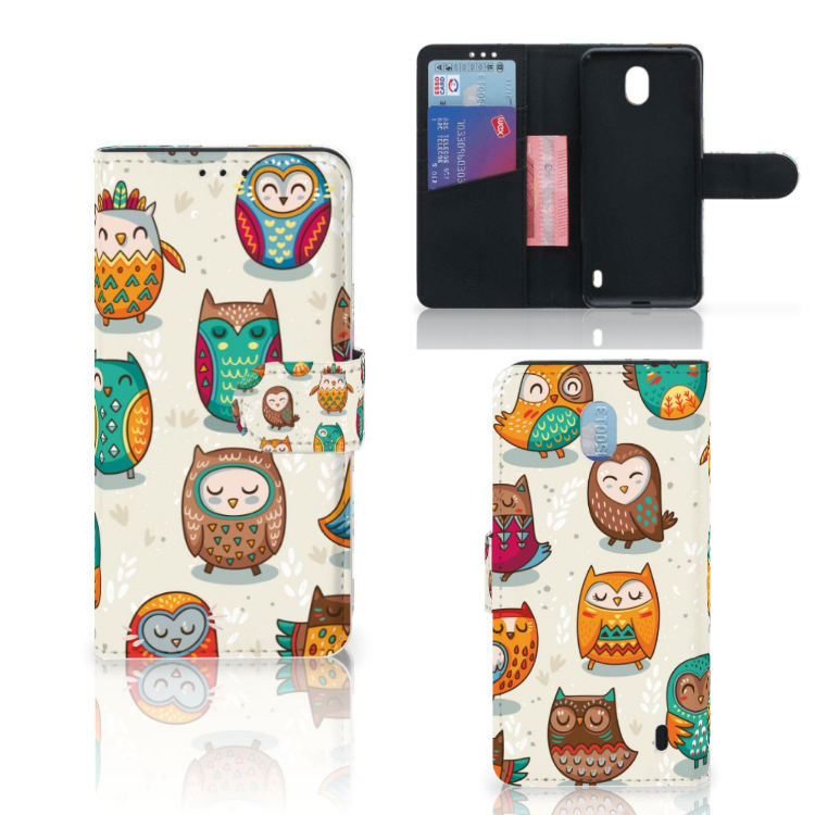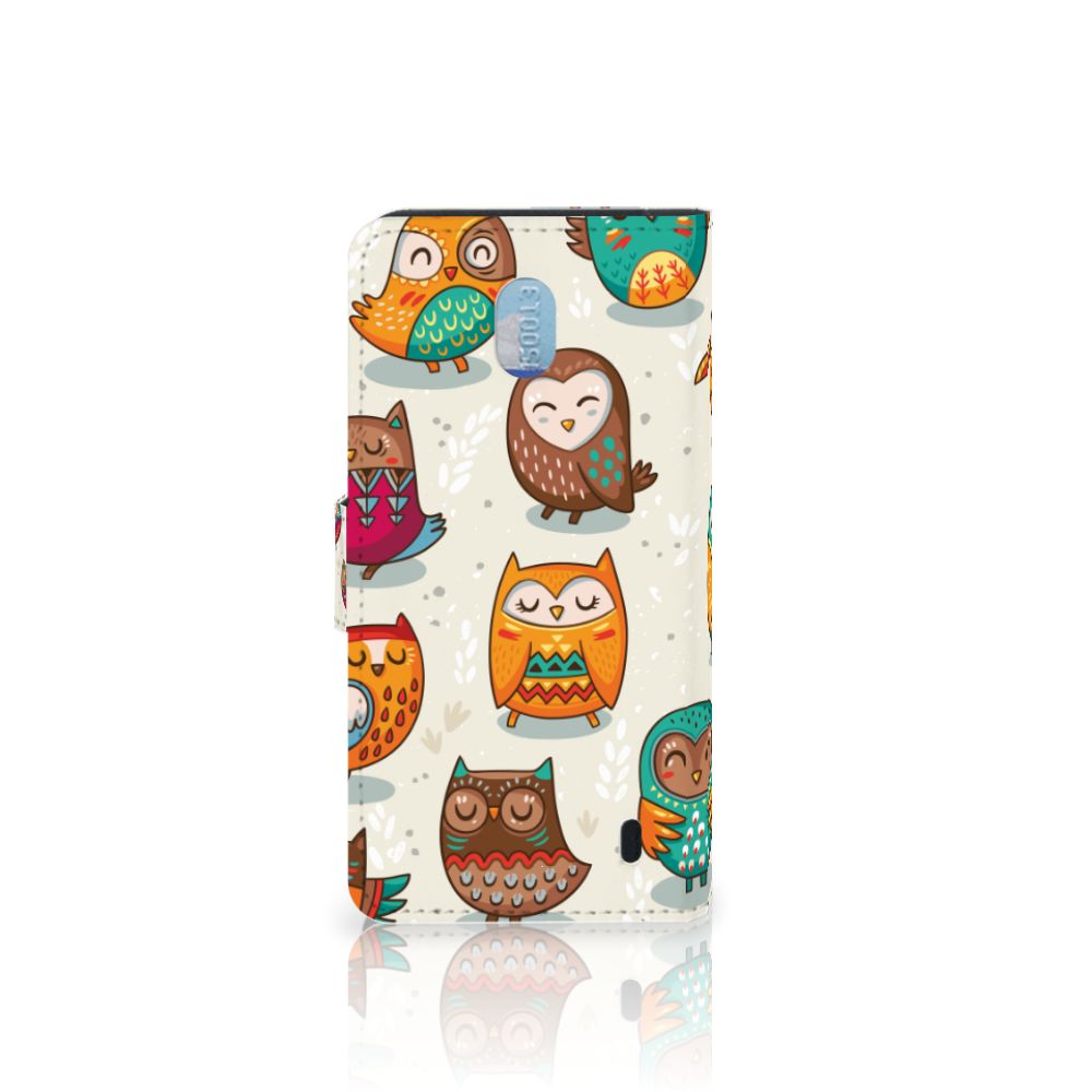 Nokia 1 Plus Telefoonhoesje met Pasjes Vrolijke Uilen