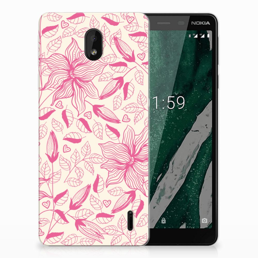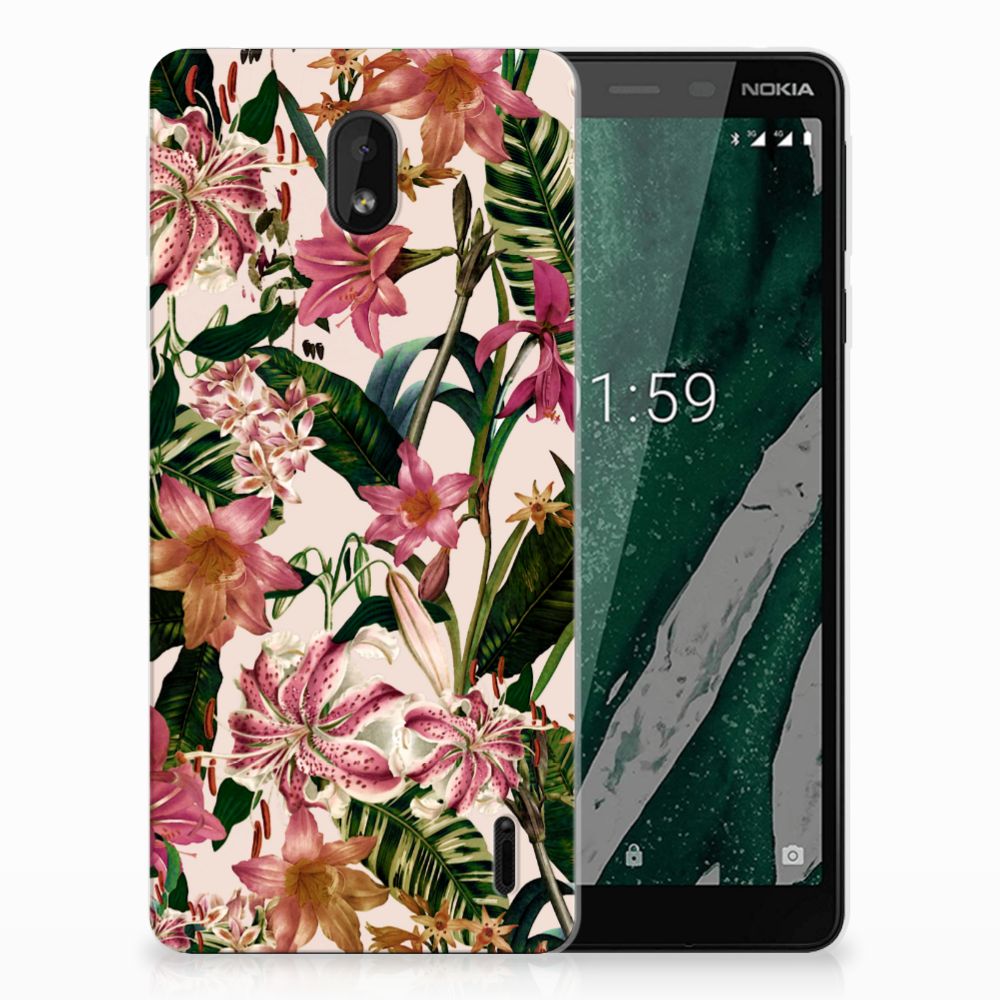 Nokia 1 Plus Silicone-hoesje Flowers Blue DTMP