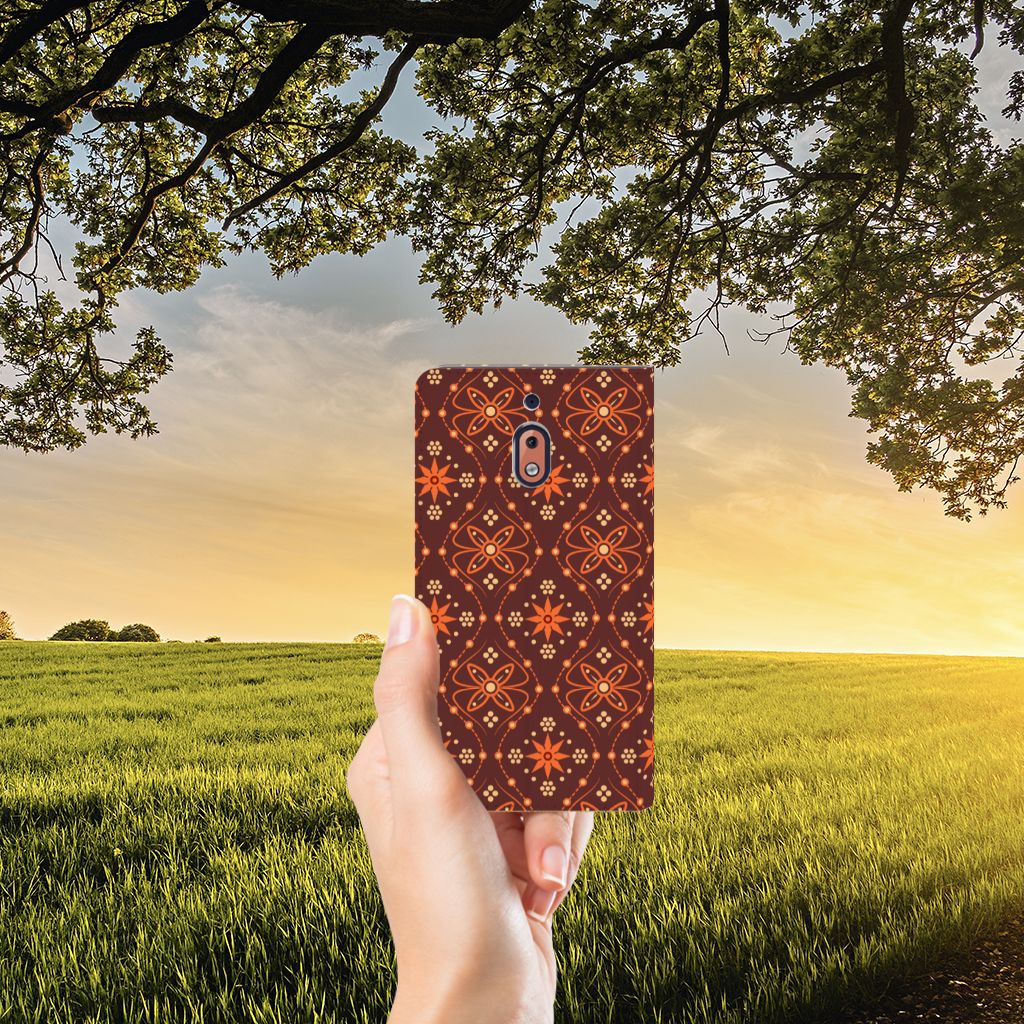 Nokia 2.1 2018 Hoesje met Magneet Batik Brown