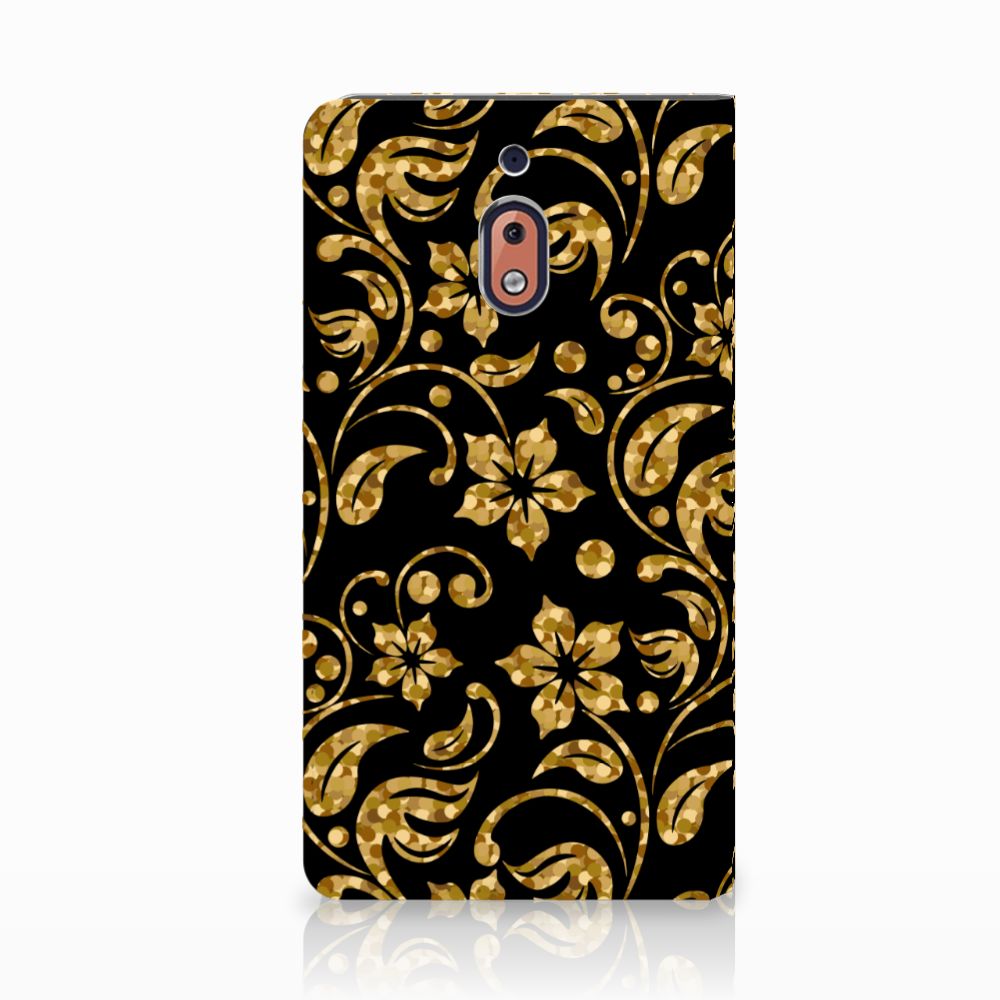 Nokia 2.1 2018 Smart Cover Gouden Bloemen